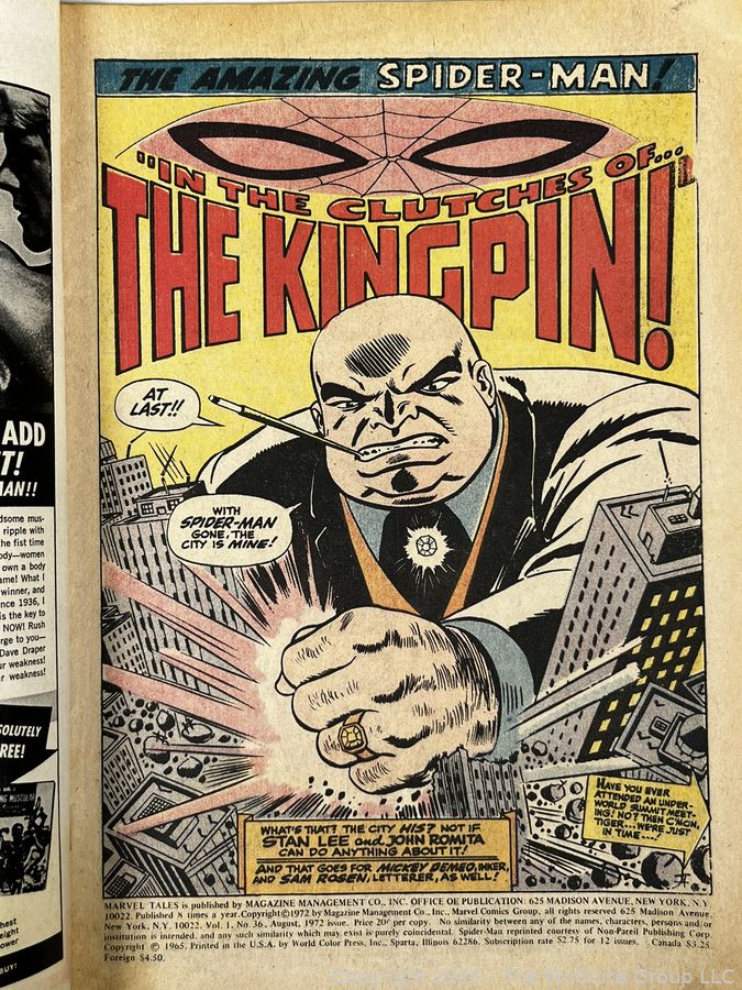 Lot #0116CP: Spider-Man Crushed by the Kingpin #36 1972 Marvel Comic Book.