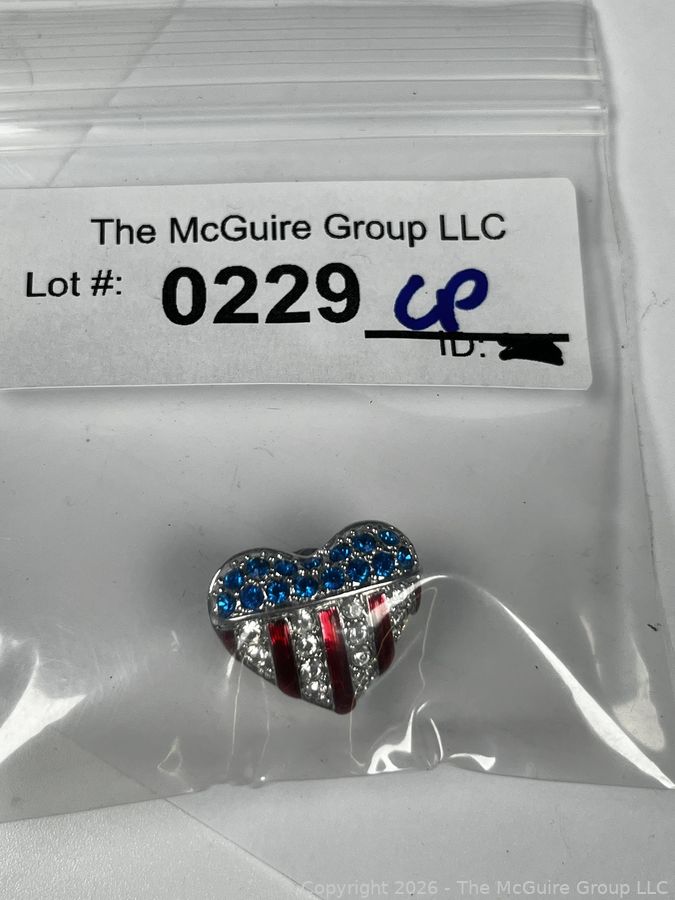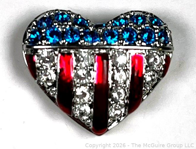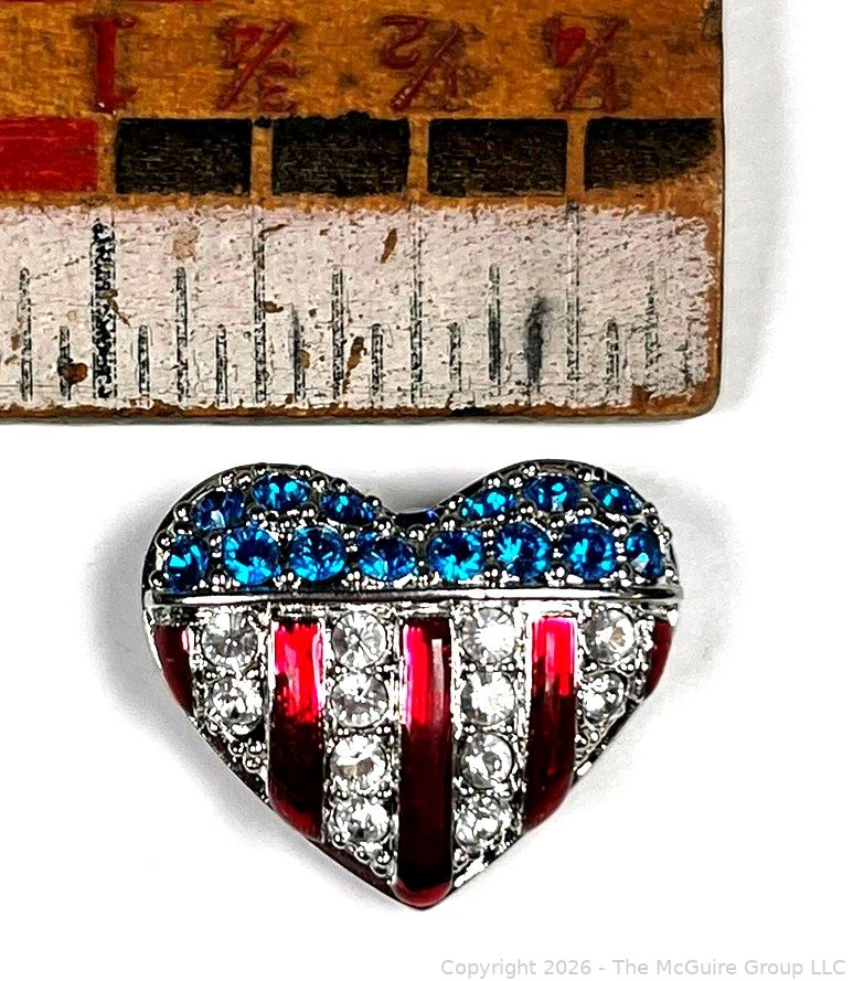 Lot #0229CP: Swarovski Brave Heart Pin Red White & Blue Crystals