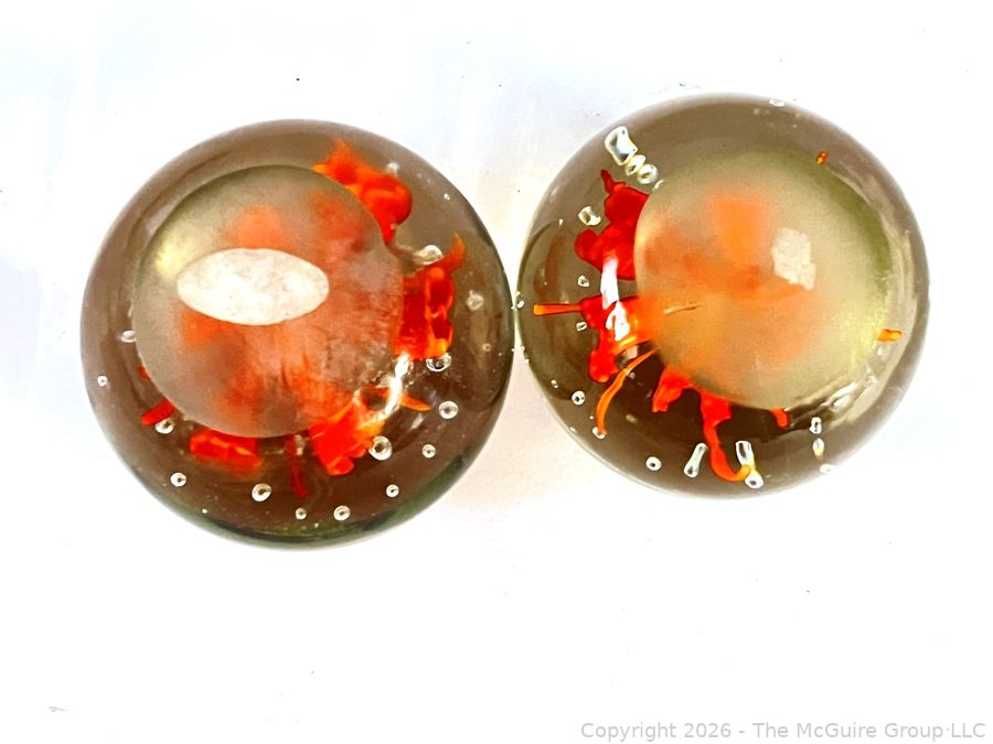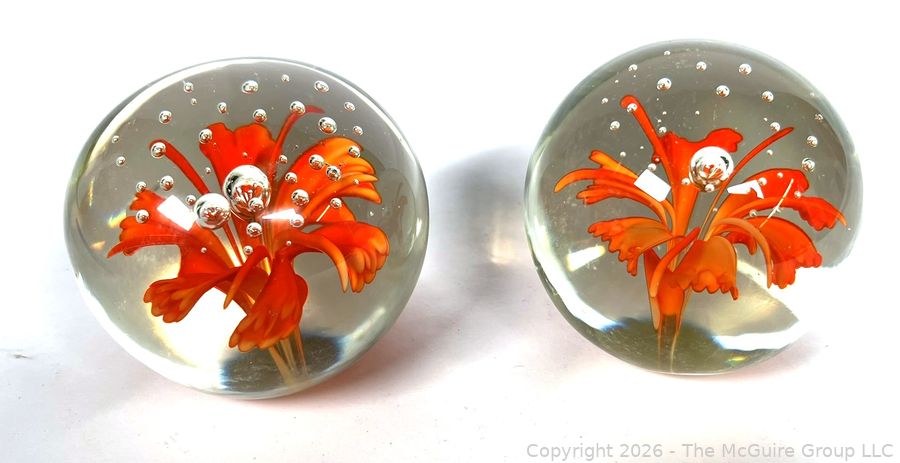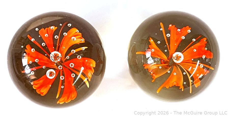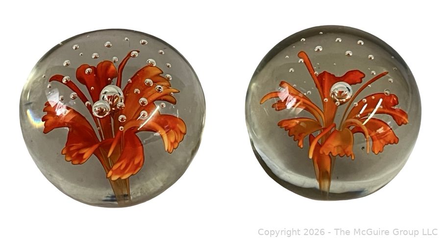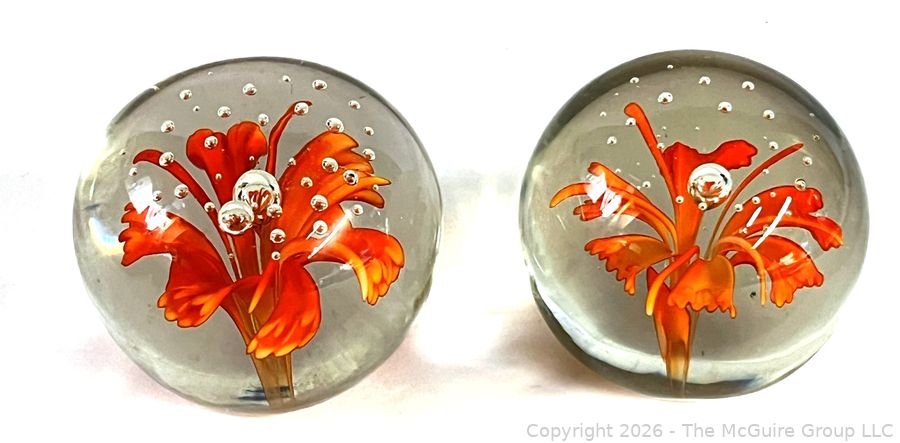 Lot #0150MB: Two (2) Orange Flower Crystal Paperweights