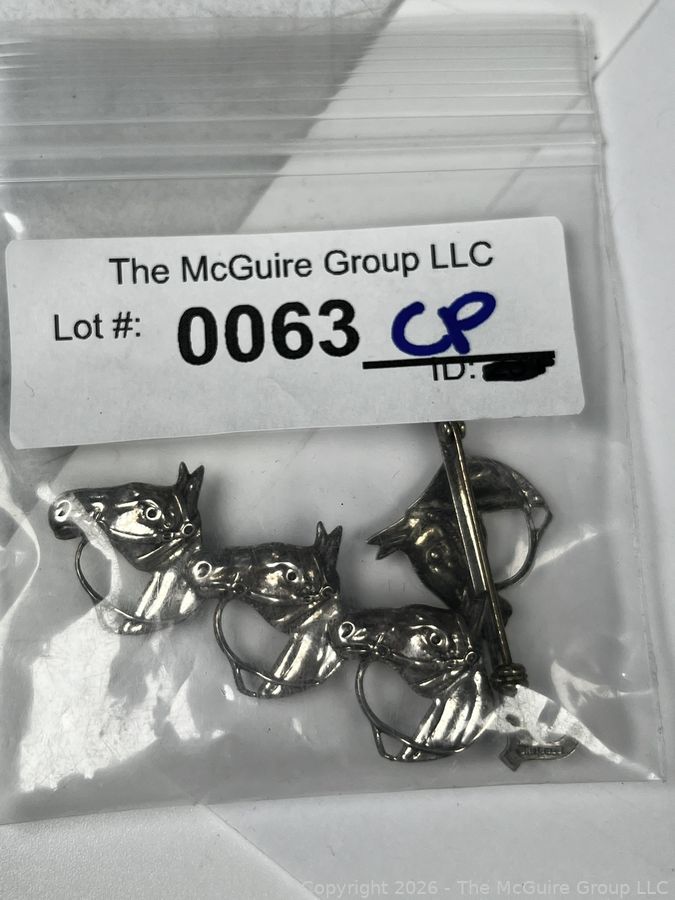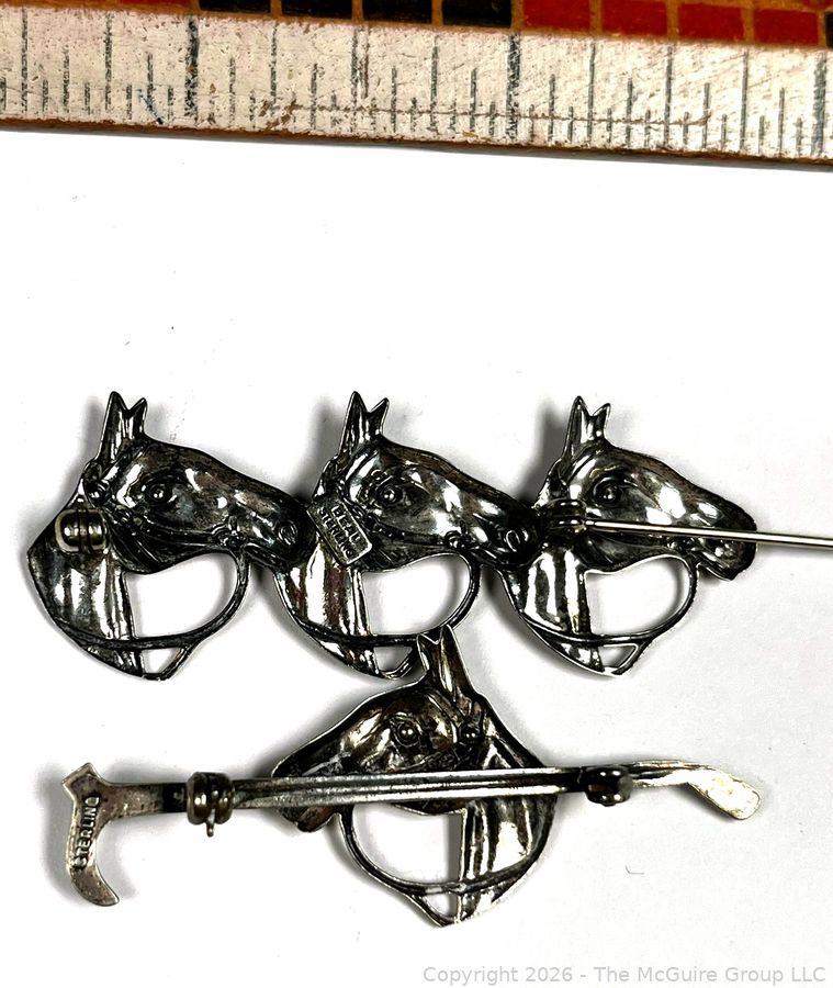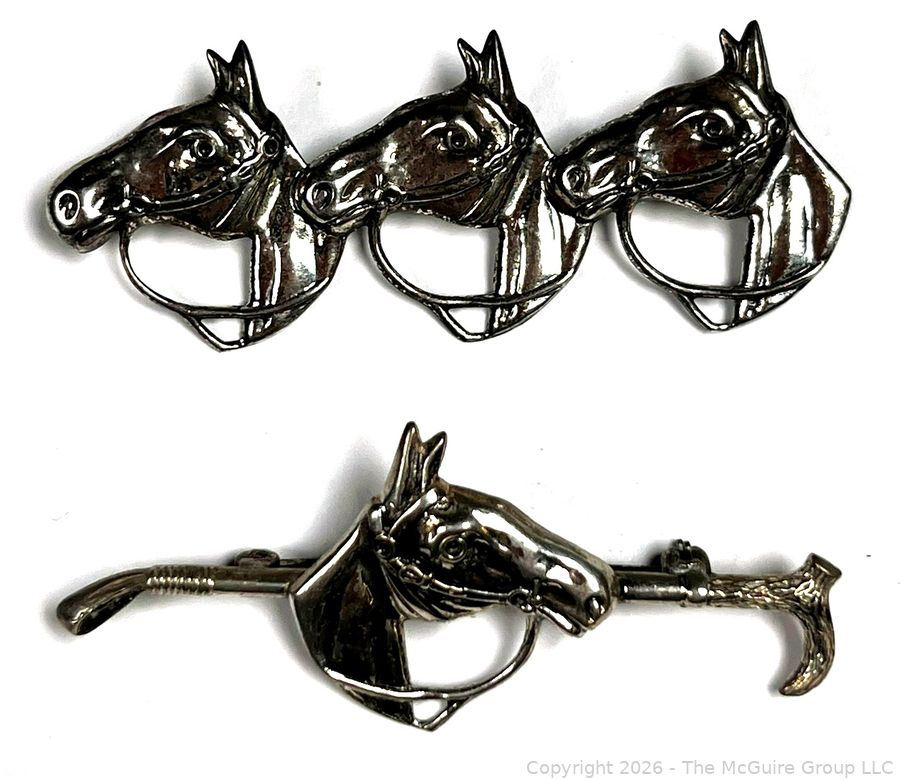 Lot #0063CP: Two (2) Sterling Silver Horse Head Equestrian Brooches