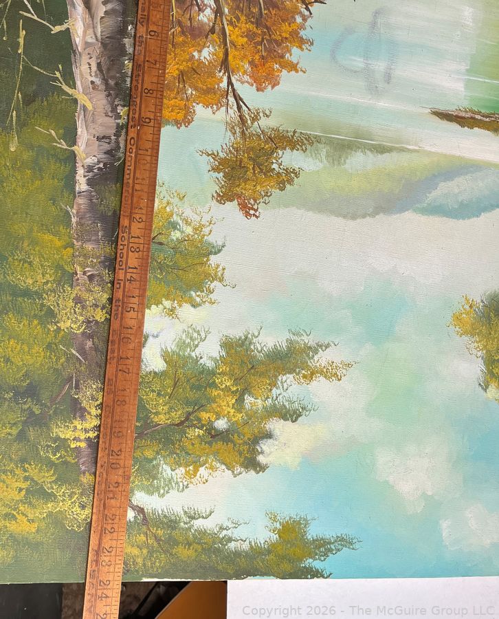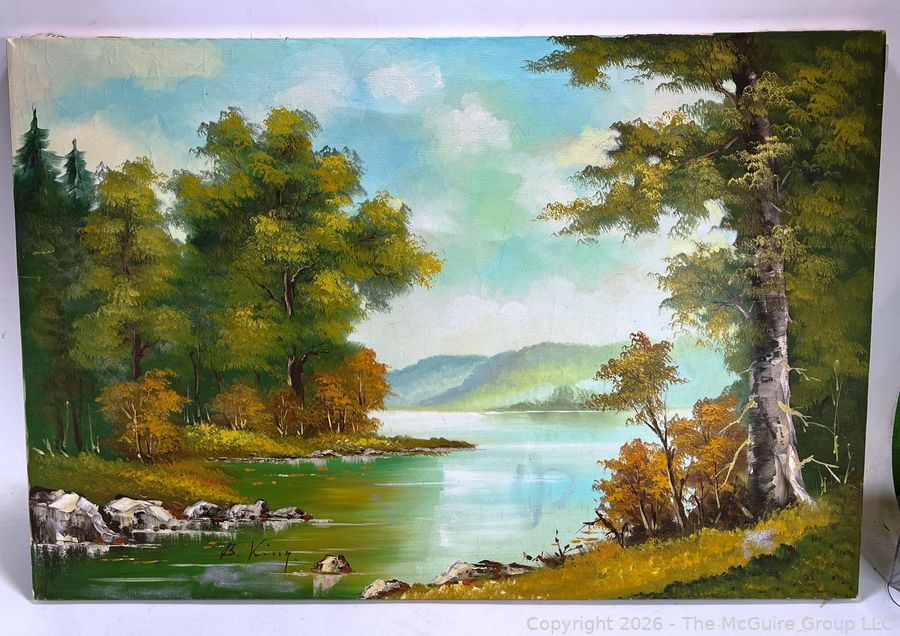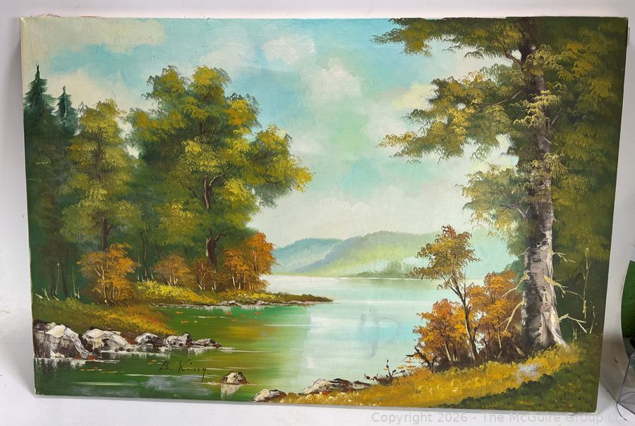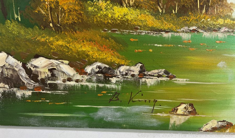 Lot #1001: Unframed Oil On Canvas Of Mountainous River Scene. Signed By Artist B. King