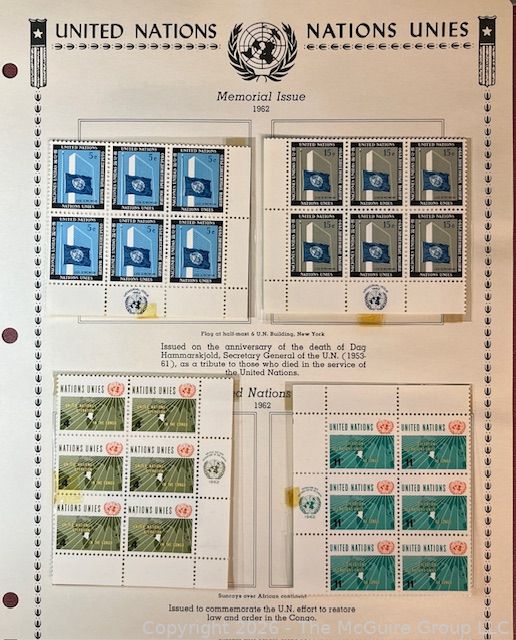 Lot #0385FB: United Nations Plate Block Stamp Album (68 album pages photographed in the gallery)