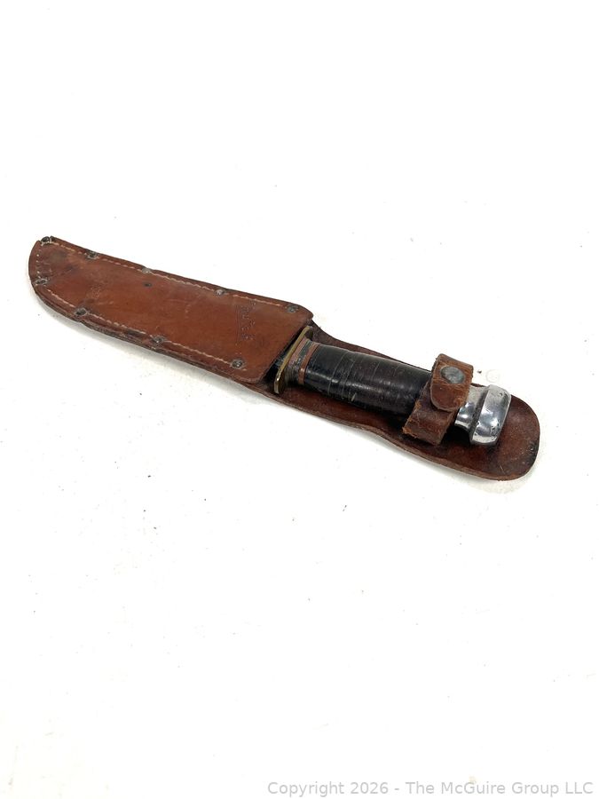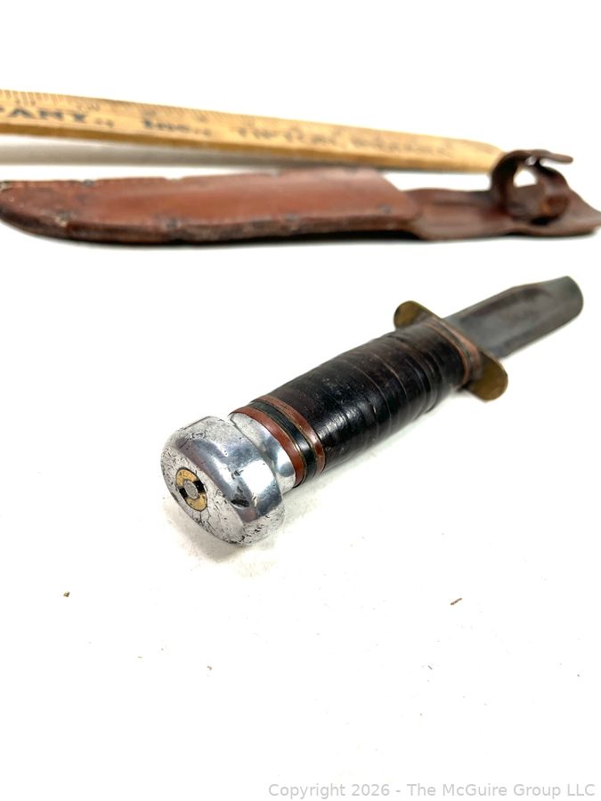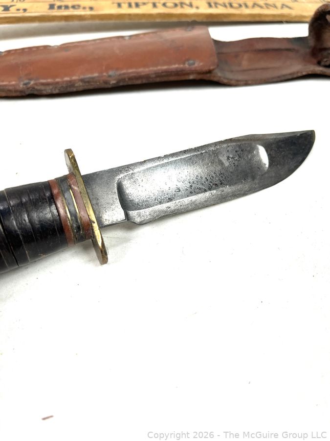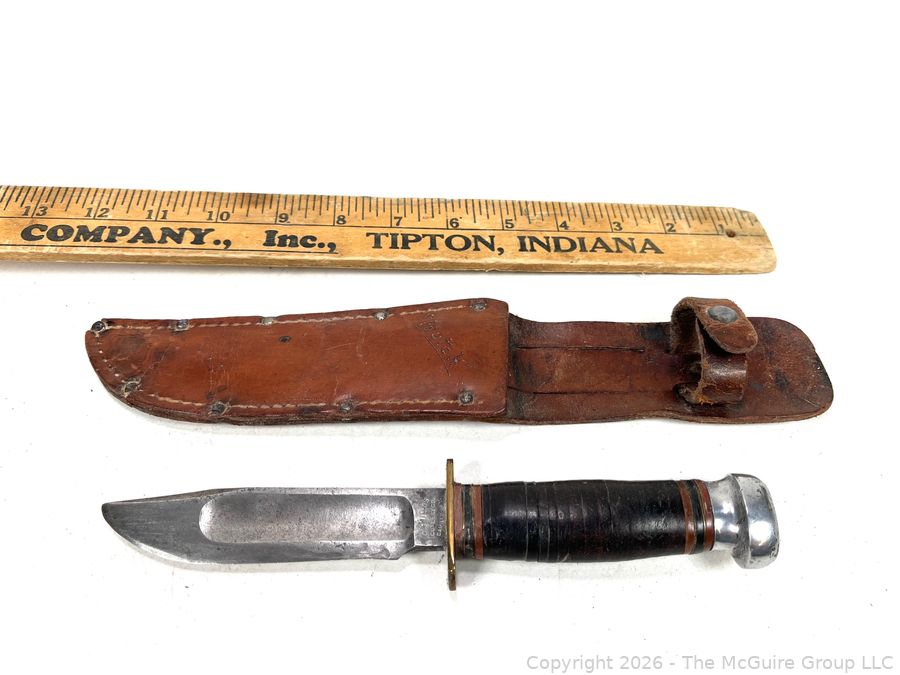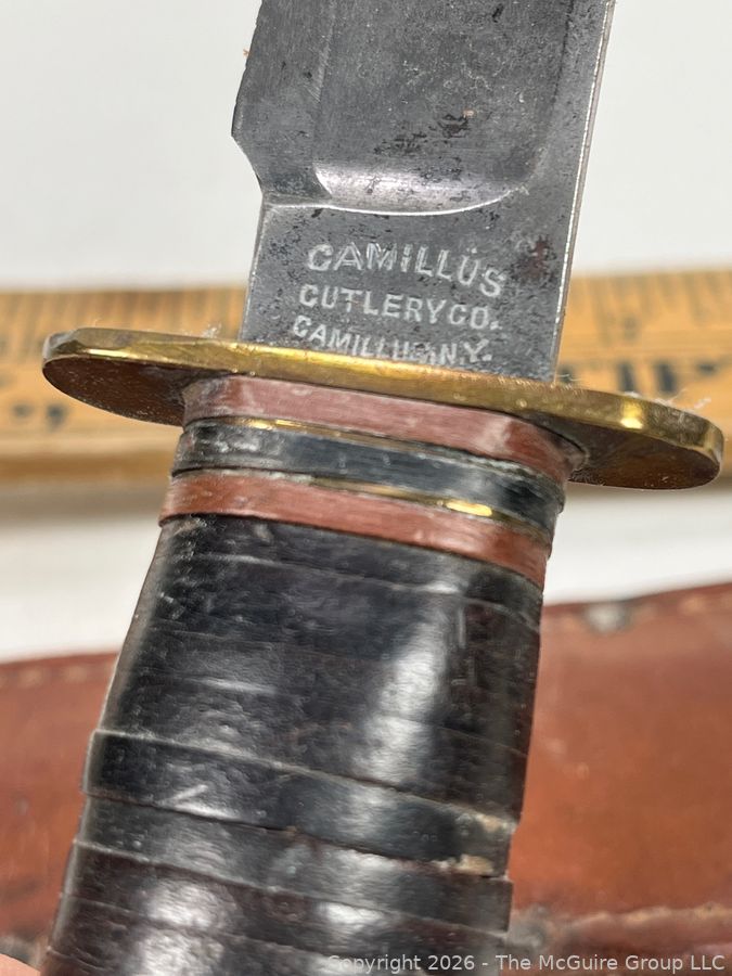 Lot #0040CP: Vintage Camillus Cutlery Co. N.Y. Bowie Knife with Leather Sheath (personalized)