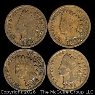 | 0344SM | Four (4) Indian Head Pennies 1898, 1899, 1900, 1901 Coins | $5.00 | 61 | 5 days, 20 hours, 41 minutes | |