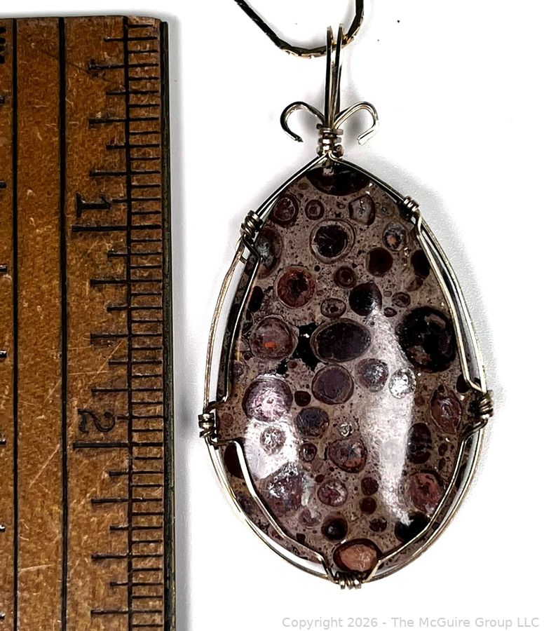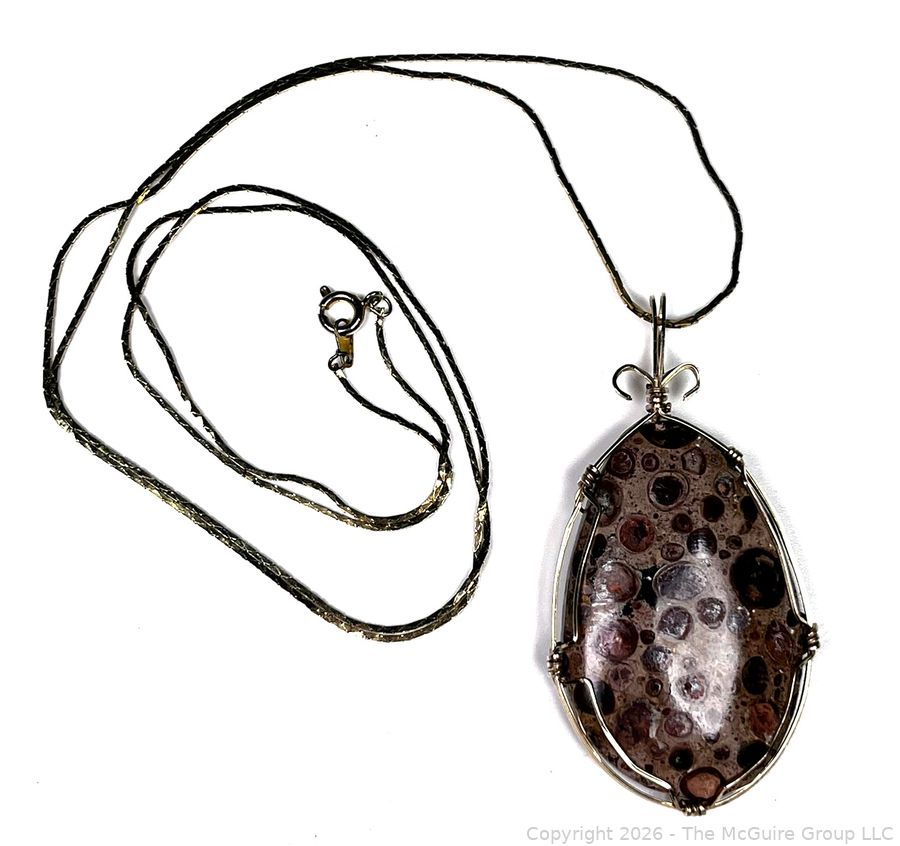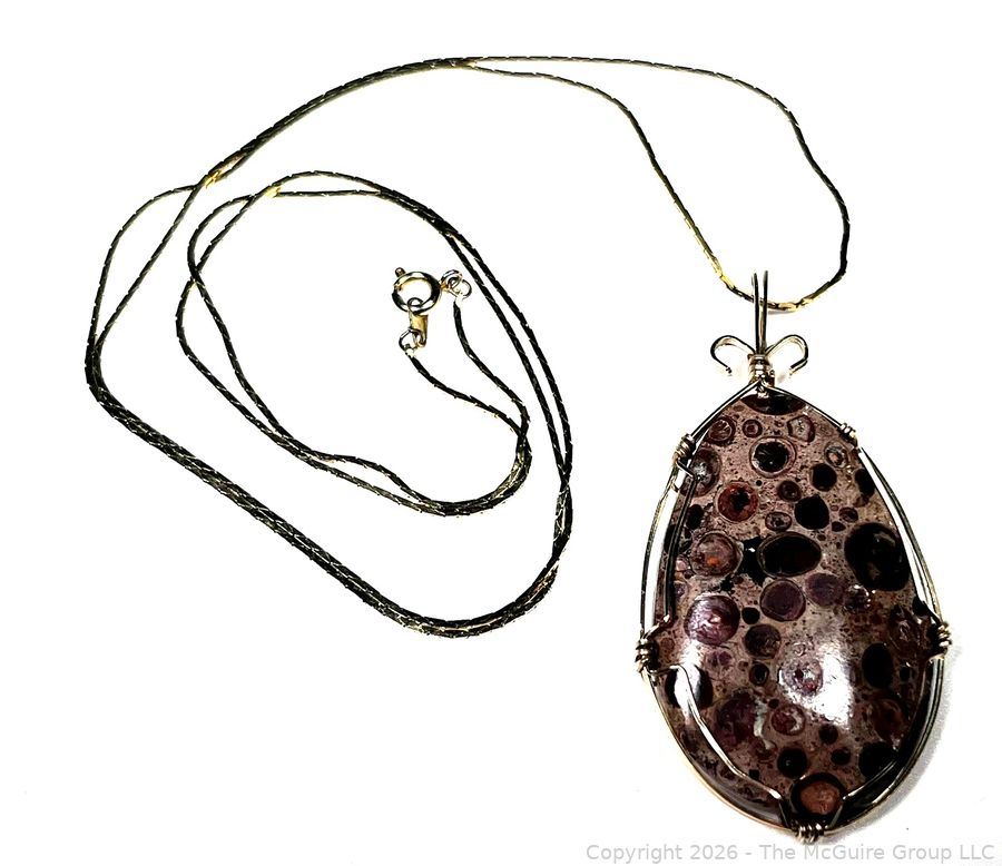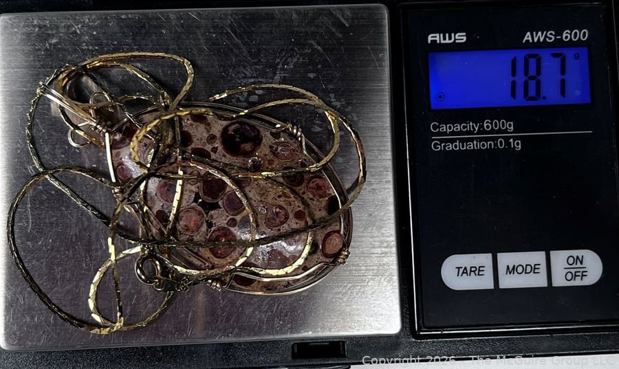 Lot #0054LC: 14K Gold Wire Wrapped Ocean Jasper Agate Pendant on 14KT Gold Chain Necklace, Tested