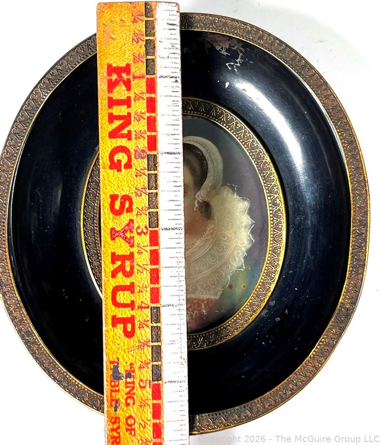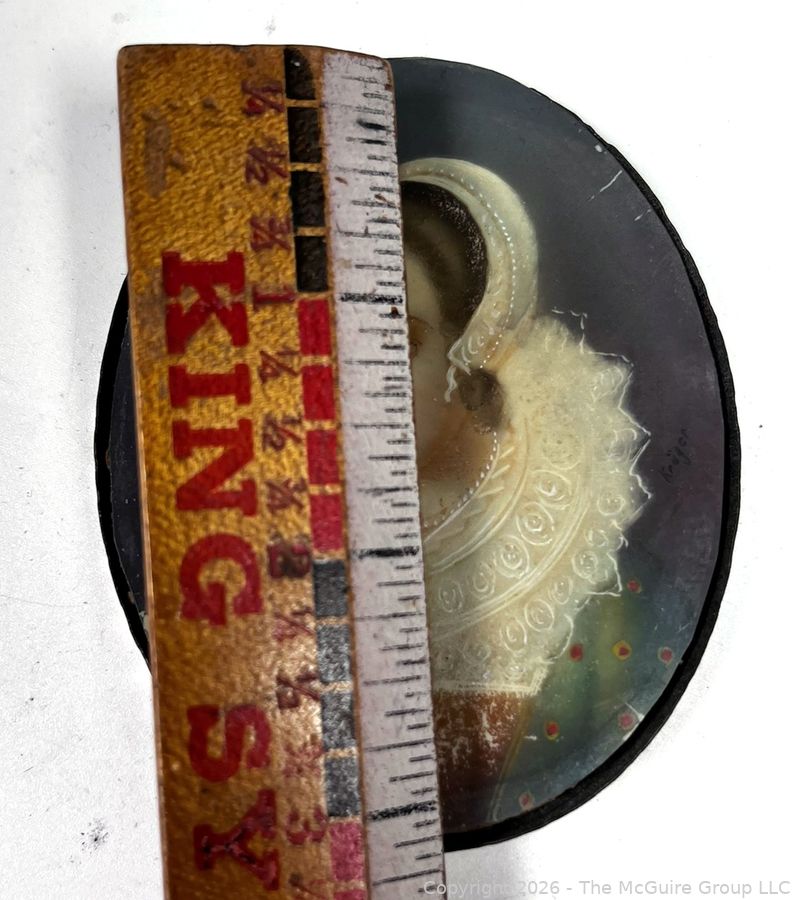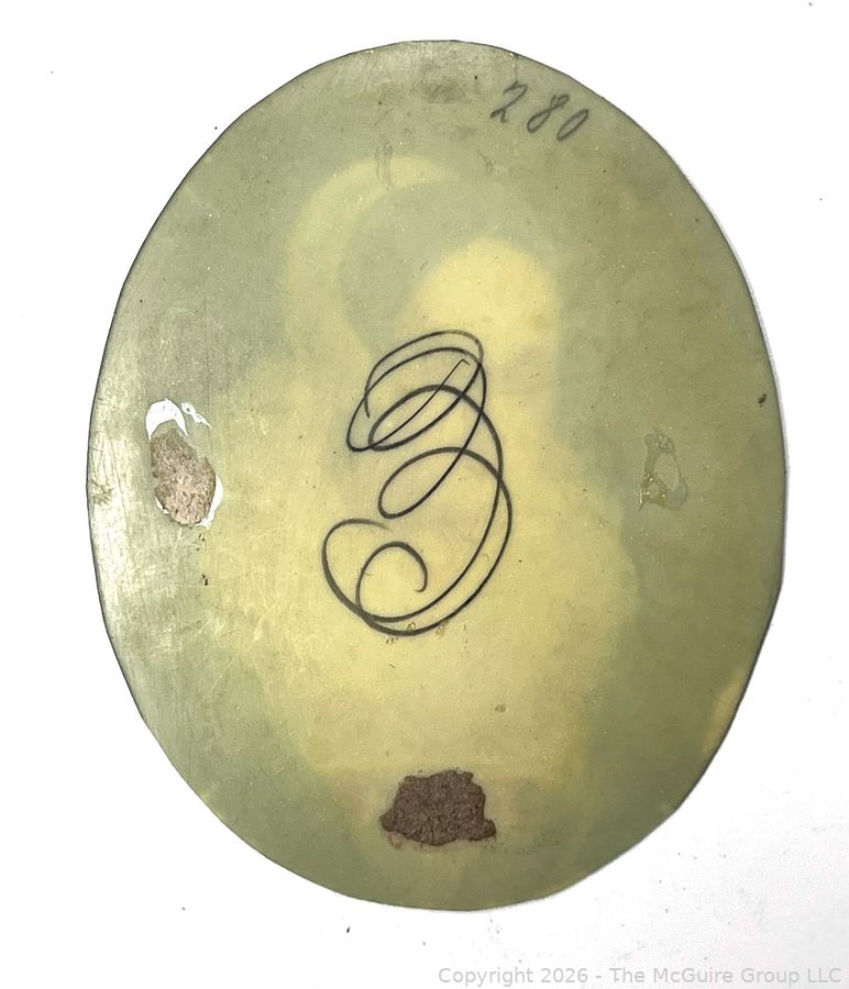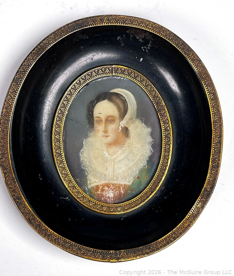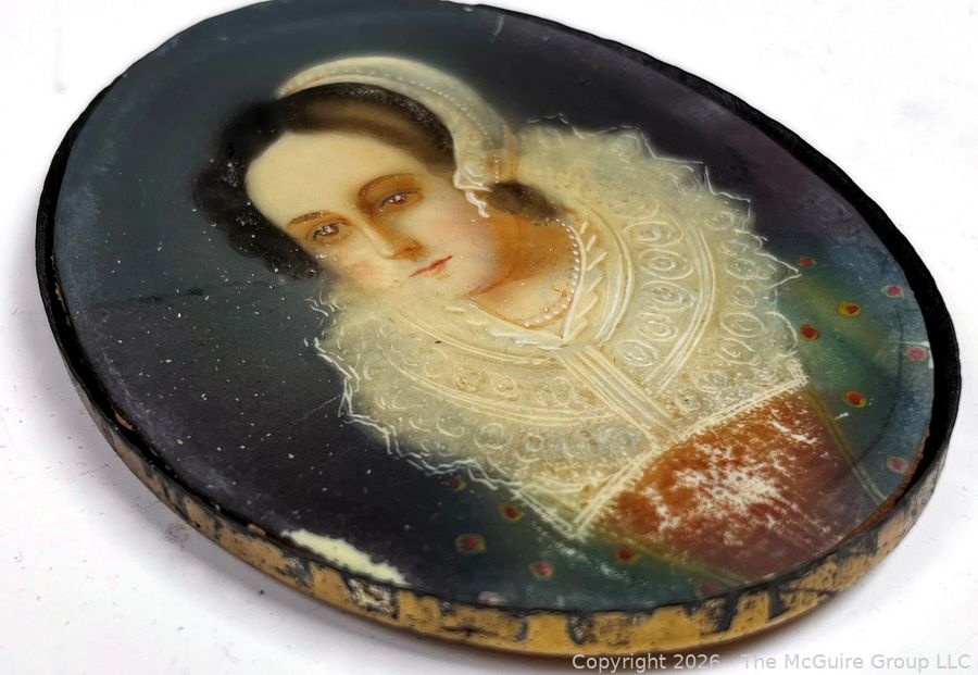 Lot #0080CP: 18th Century French Miniature Oil Painting on Celluloid of Young Court Lady Signed on Back by Artist.