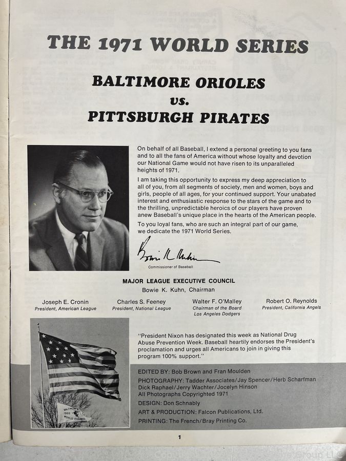 Lot #0037LC: 1971 Baseball World Series Program. Baltimore Orioles vs Pittsburgh Pirates