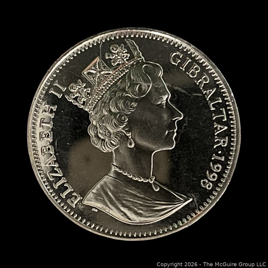 Lot #0181LC: 1998 Gibraltar Silver Proof "Kissing Cherubs" 1 Crown Coin