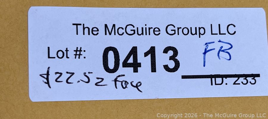 The McGuire Group, LLC encourages all bidders to inspect lots in person before bidding. The McGuire Group, LLC is not responsible for incorrect listing information, if any. The McGuire Group, LLC has attempted to provide accurate descriptions of all items, however, it is the bidders responsibility to determine the condition and suitability of each lot. Printed statements or descriptions by The McGuire Group, LLC staff are provided in good faith and are matters of opinion.