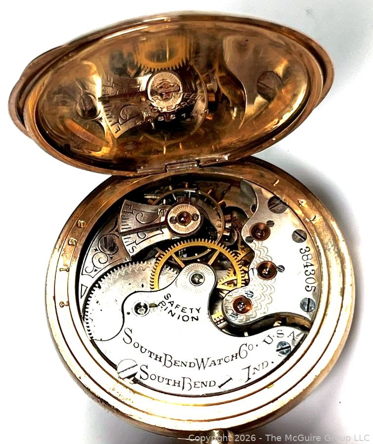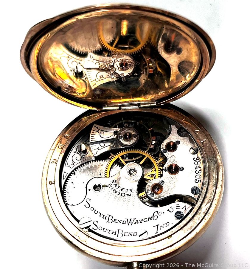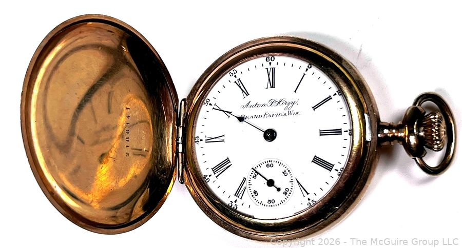 Lot #0134LC: Anton Hirzy Grand Rapids Michigan Pocket Watch with South Bend Watch Company Mechanism Housed in Gold Plated Case