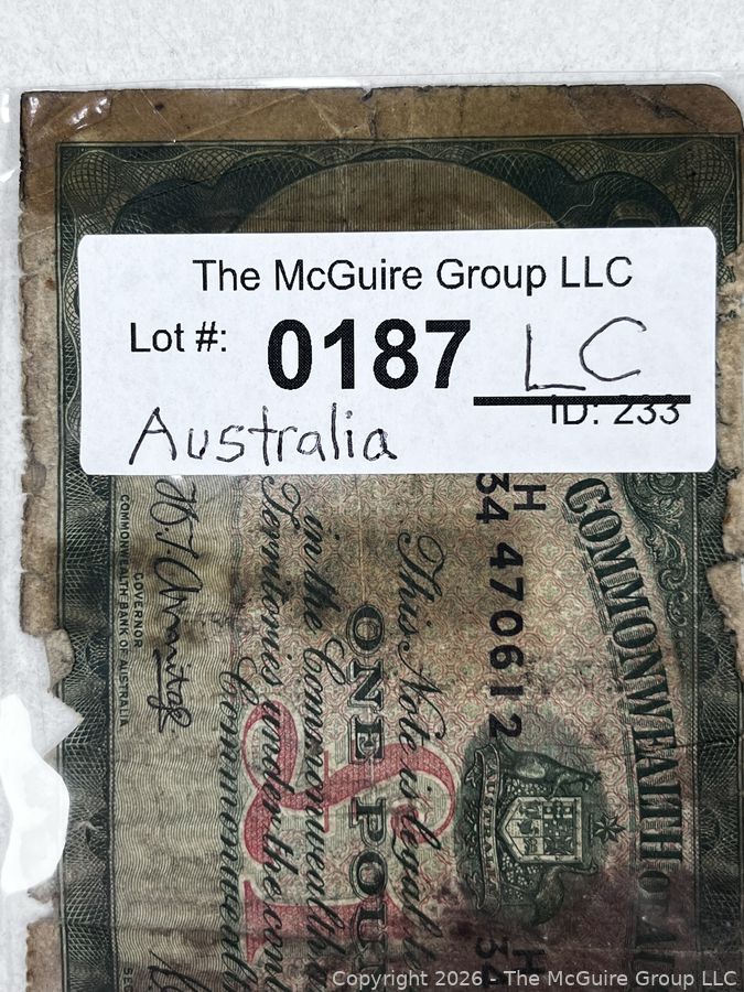 Lot #0187LC: Australian One Pound Banknote
