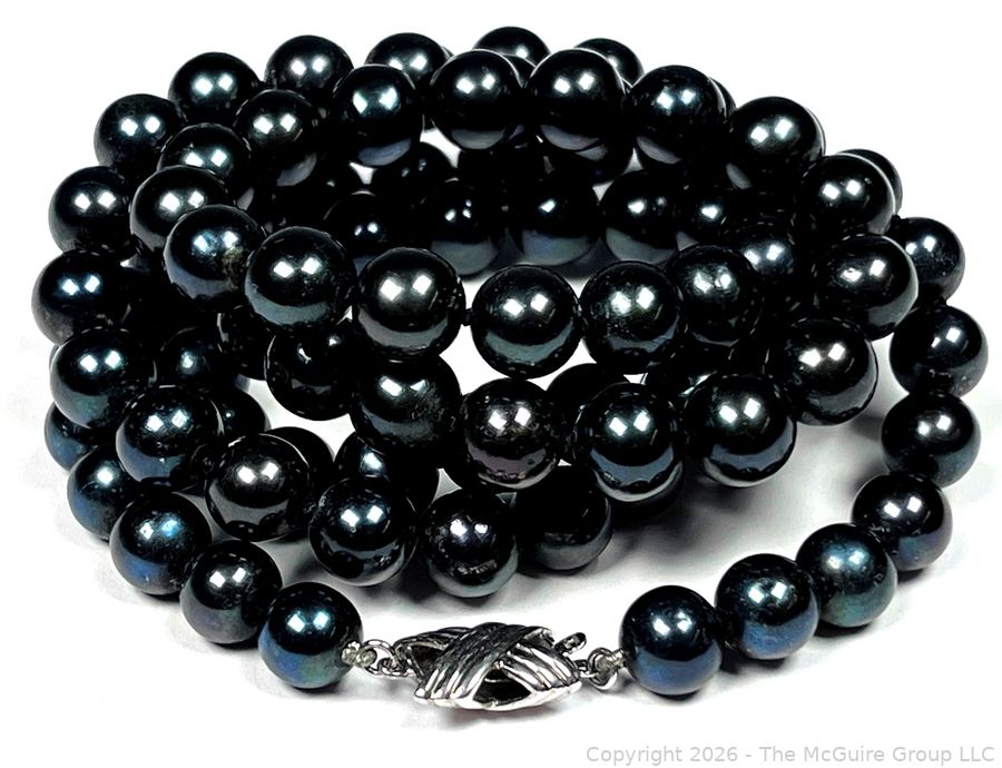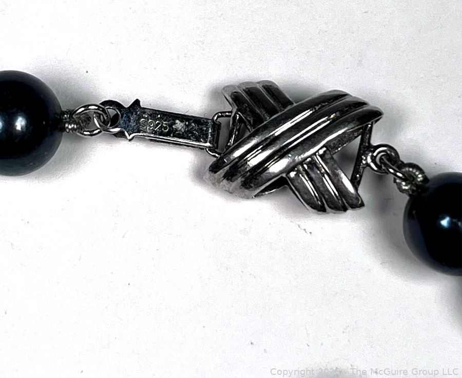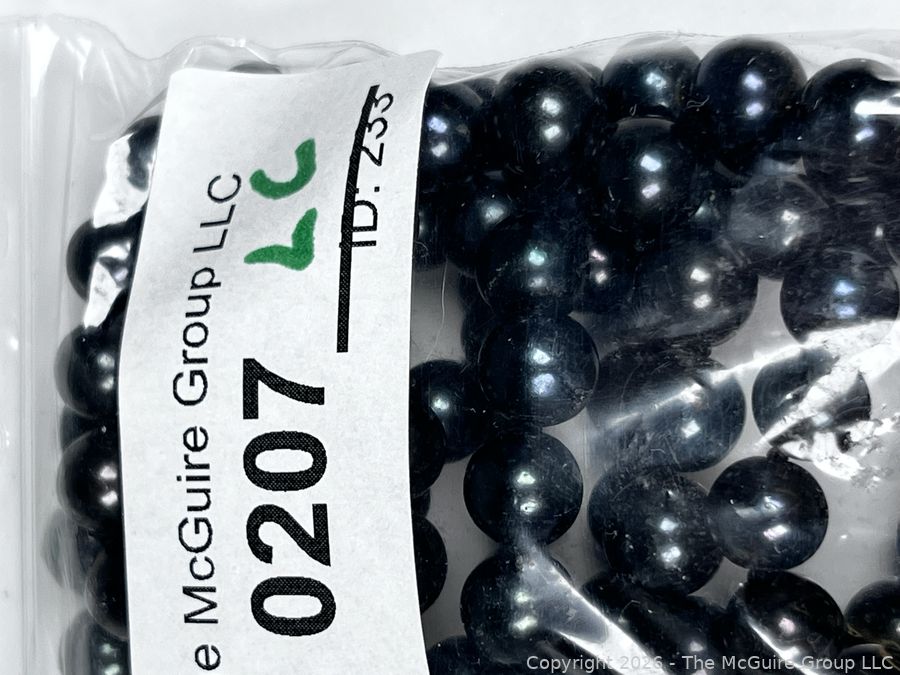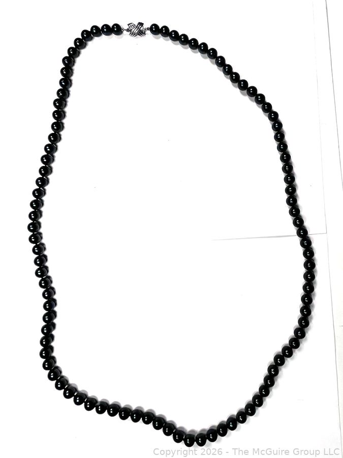 Lot #0207LC: Black Onyx or Pearl Bead Necklace with Sterling Clasp