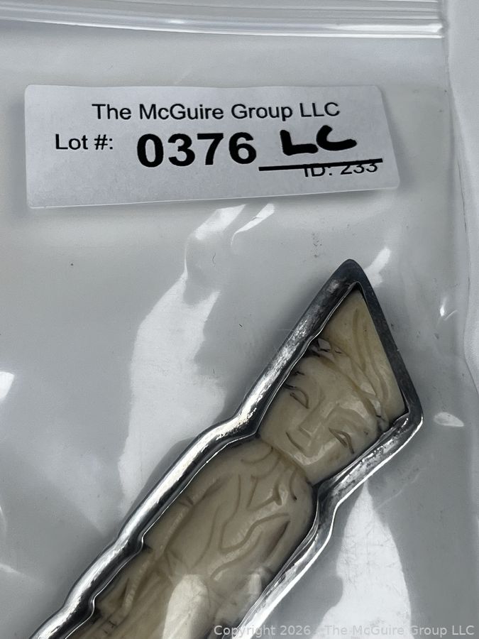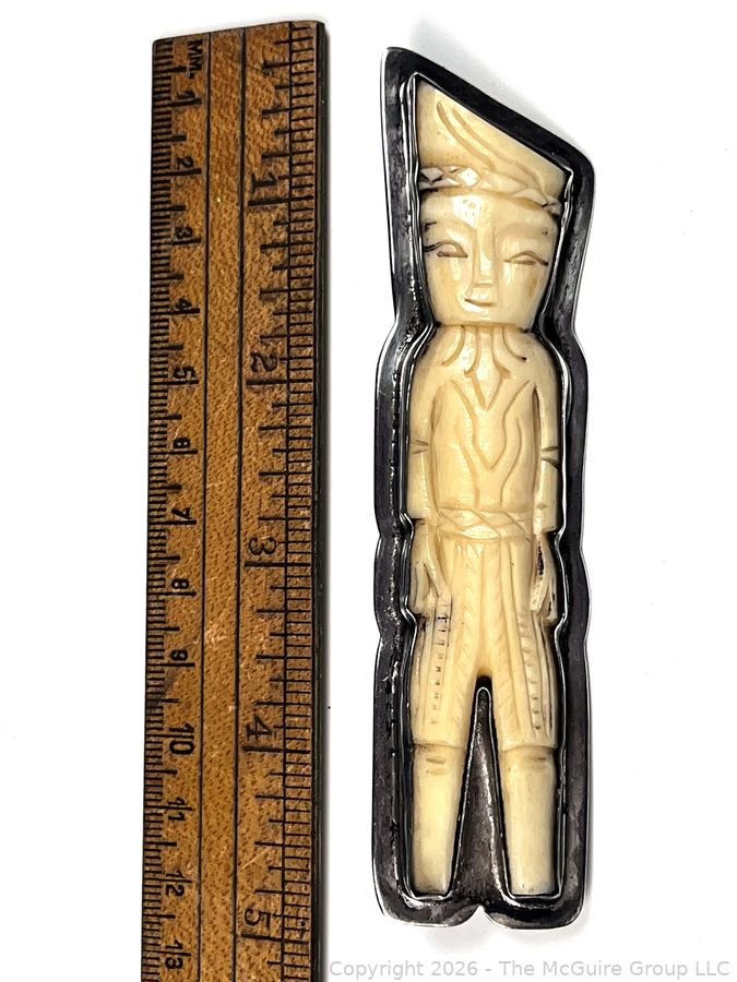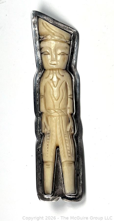 Lot #0376LC: Carved Bone Soldier Mounted in Sterling Silver Brooch