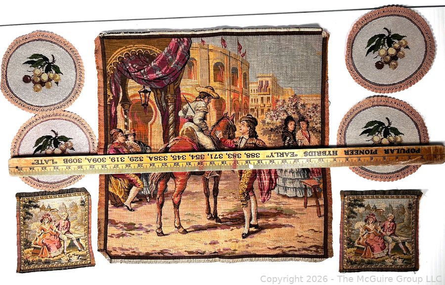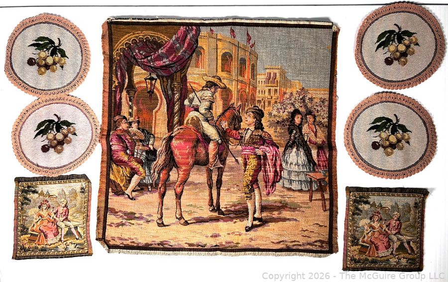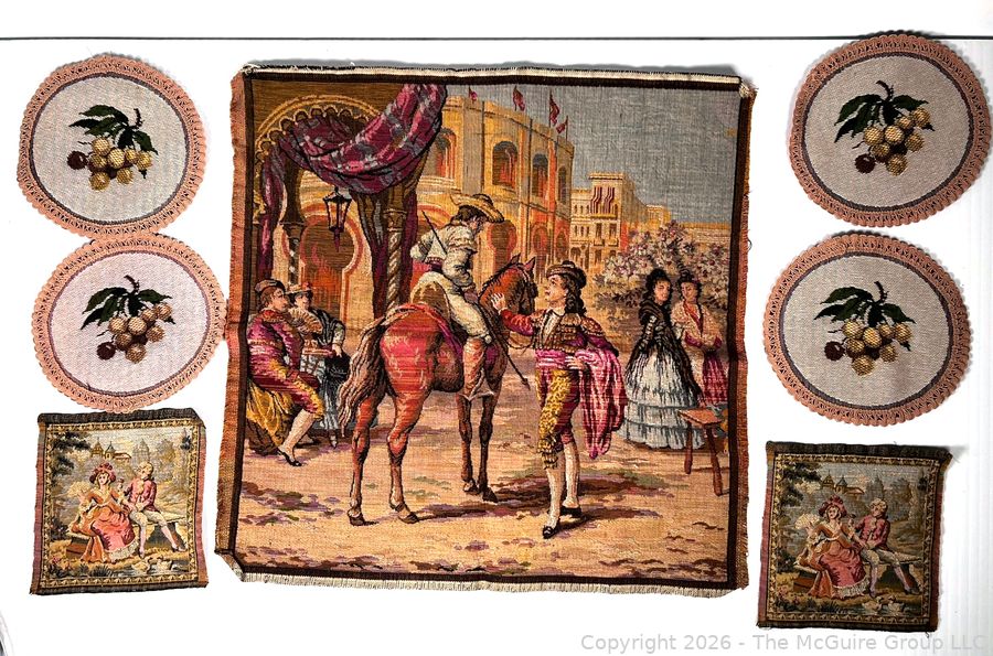 Lot #0274CP: Collection of Hand Woven Tapestries Including Belgium Spanish Dancer and French Courting Couples
