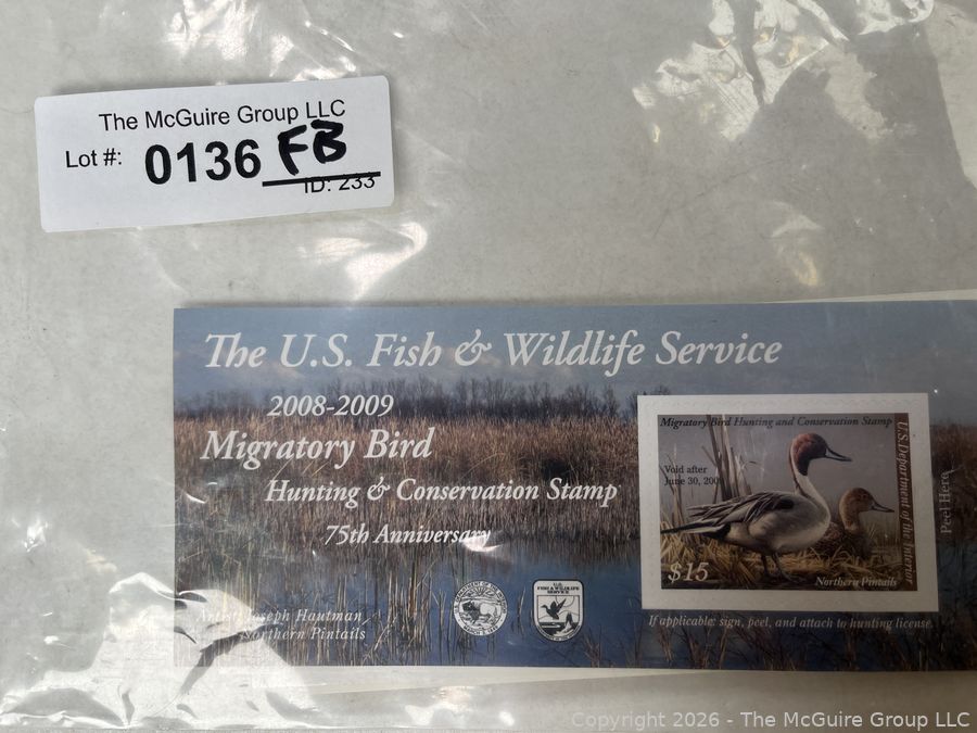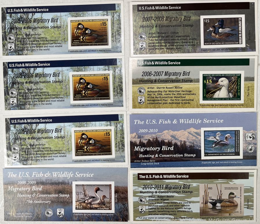Lot #0136FB: Eight (8) US Fish and Wildlife Service Hunting Stamp Booklets. Face Value $90
