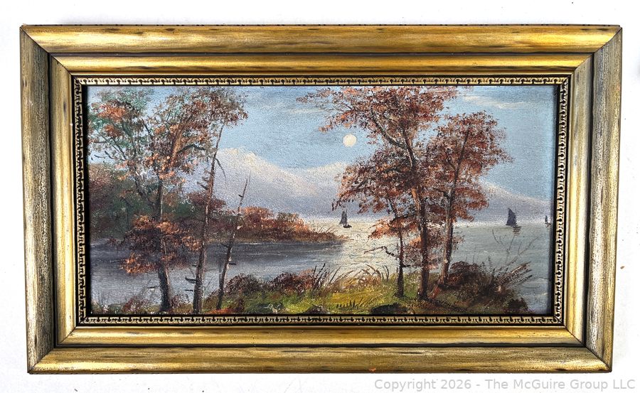 Lot #0073LC: Framed Oil on Board of Cove Signed by Artist on Back.