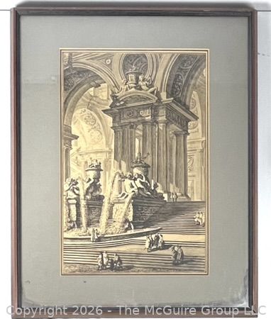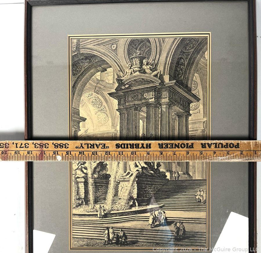 Lot #0450PB: Framed Under Glass Lithograph of Colonnades Fountain by Giovanni Battista Piranesi. 18" x 22"
