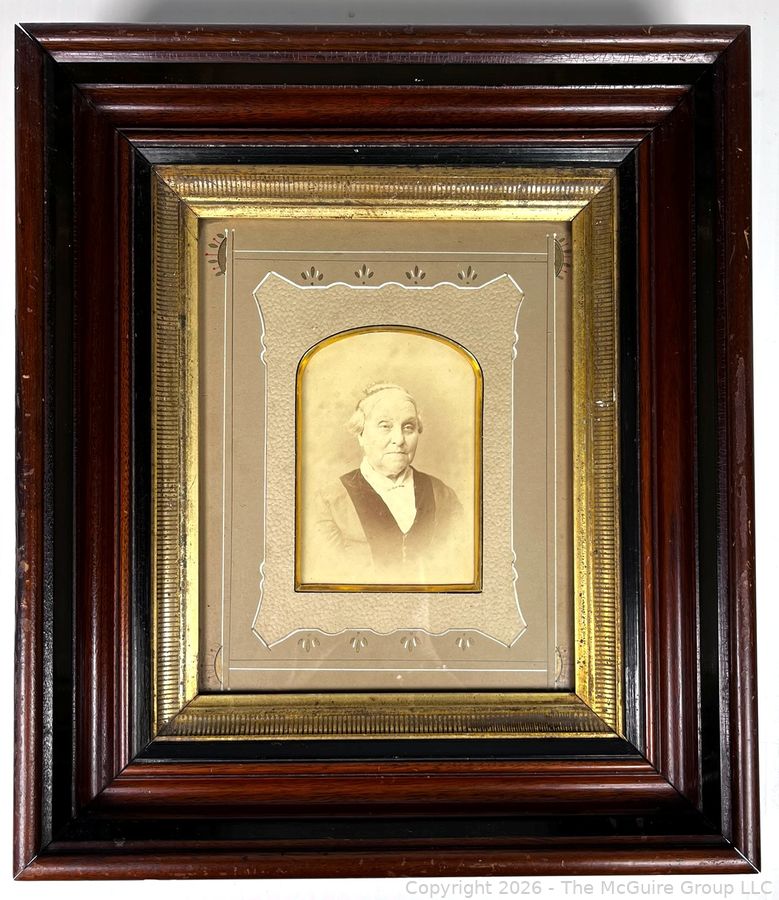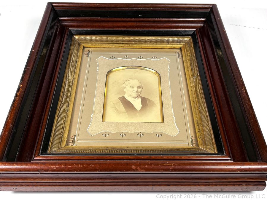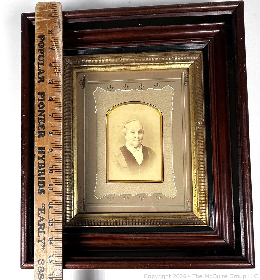 Lot #0195CP: Framed Under Glass Tin Type Photograph of Woman Identified on Back As BP Coffin. 13" x 15" OD