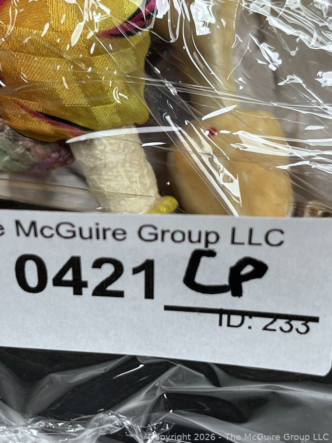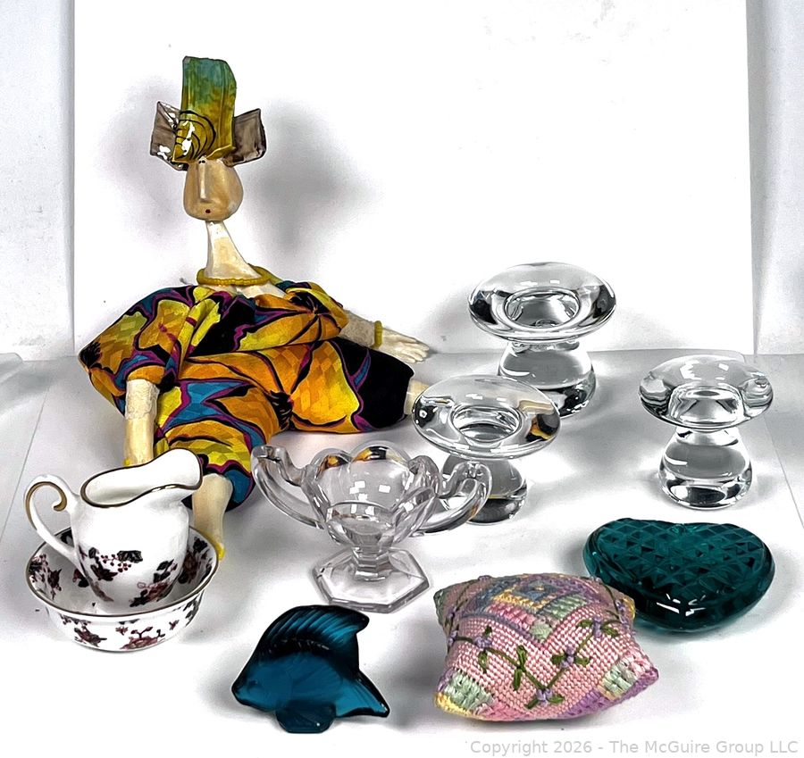 Lot #0421CP: Group of Porcelain and Decorative Objects Including Bead Bag Doll.
