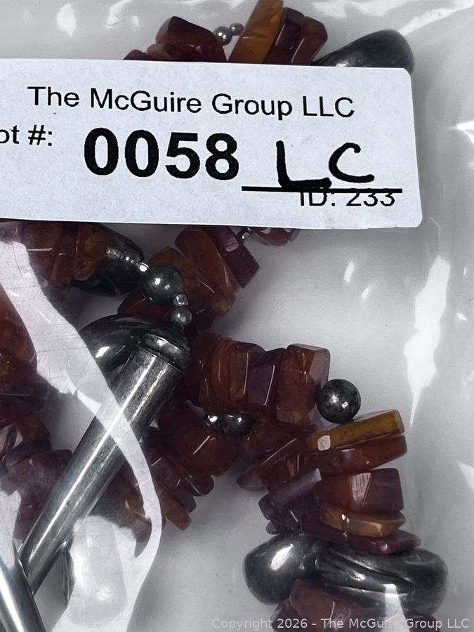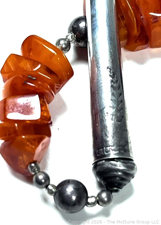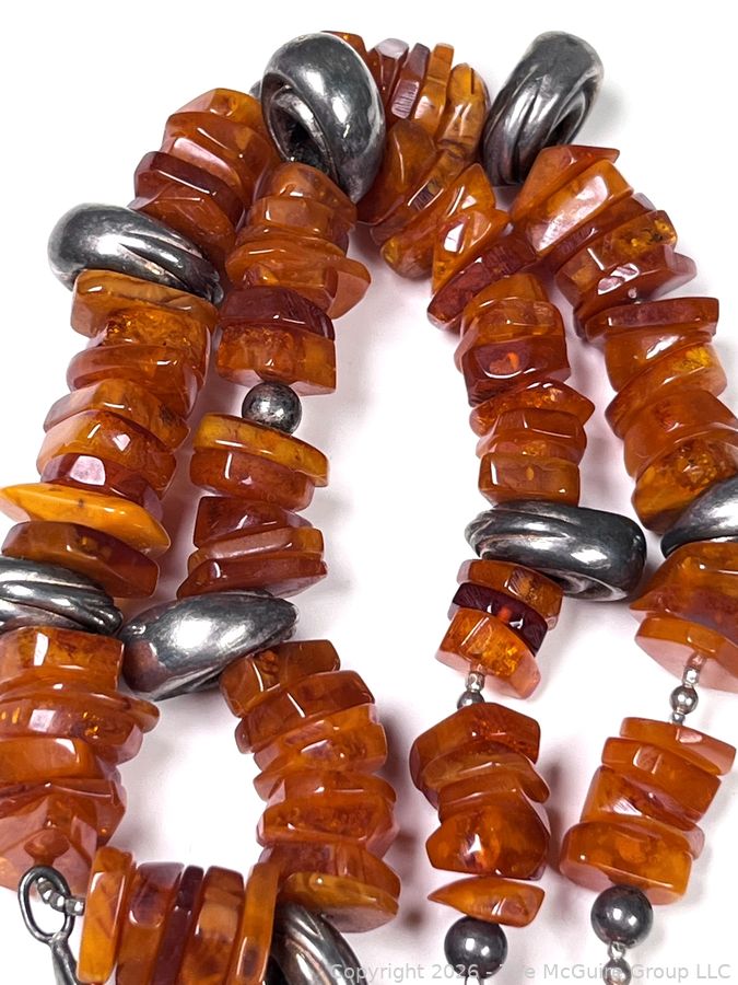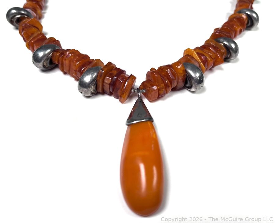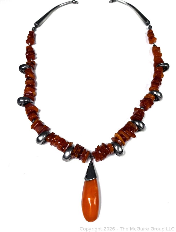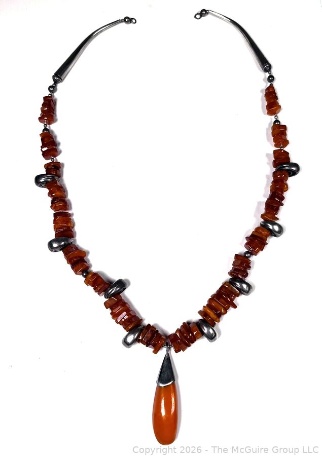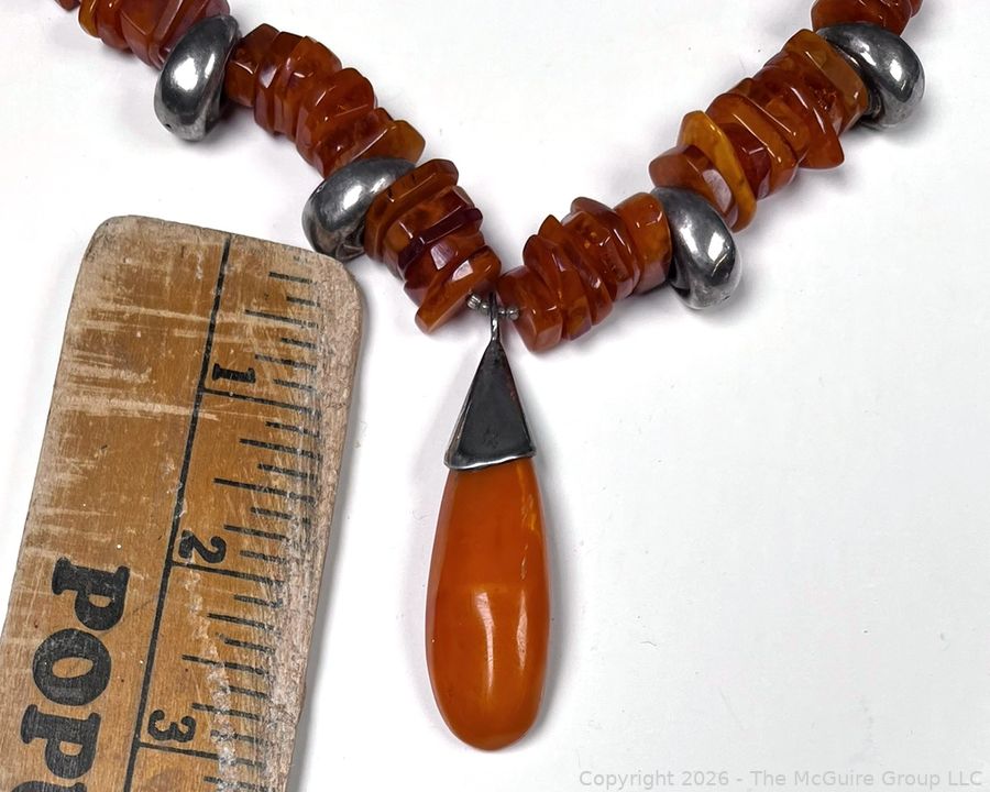 Lot #0058LC: Honey Amber and Silver Tribal Pendant Necklace