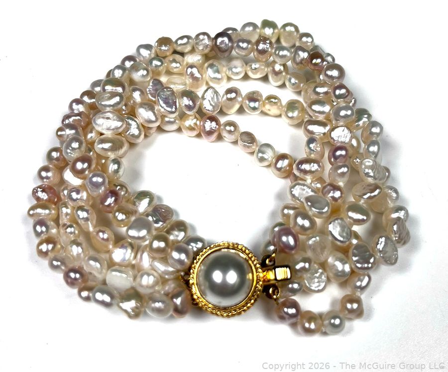 Lot #0300LC: Multi Strand Fresh Water Pearl Bead Bracelet