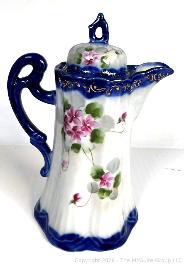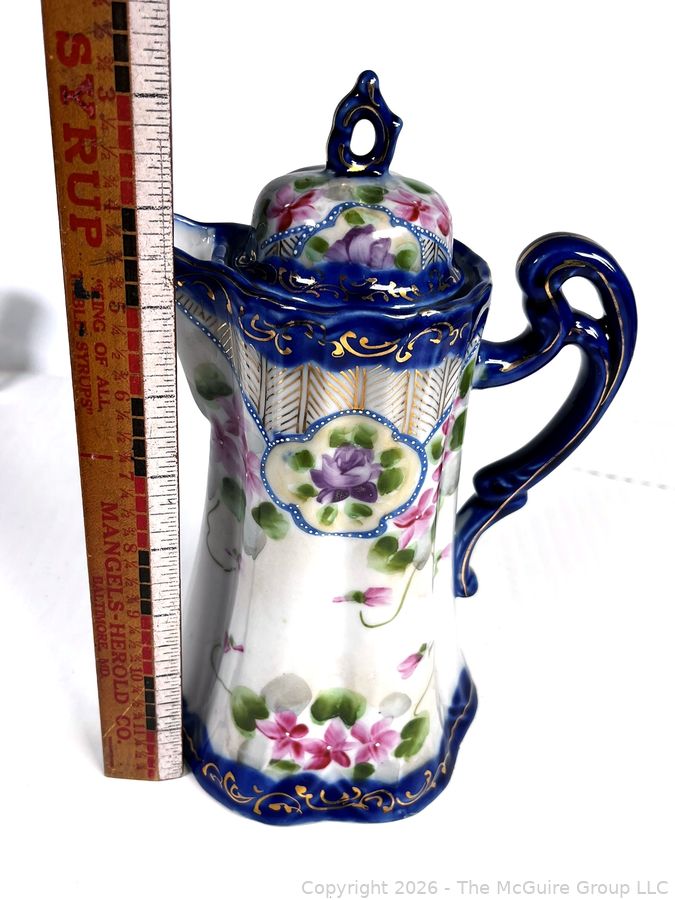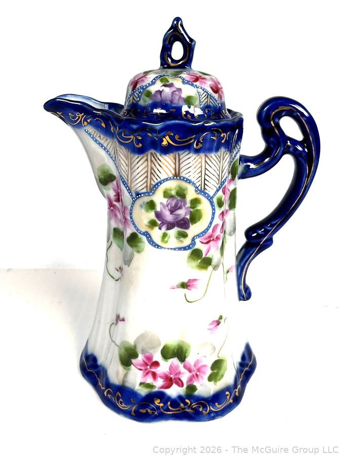 Lot #0218CP: Nippon Hand Painted Cherry Blossom and Cobalt Blue Chocolate Pot