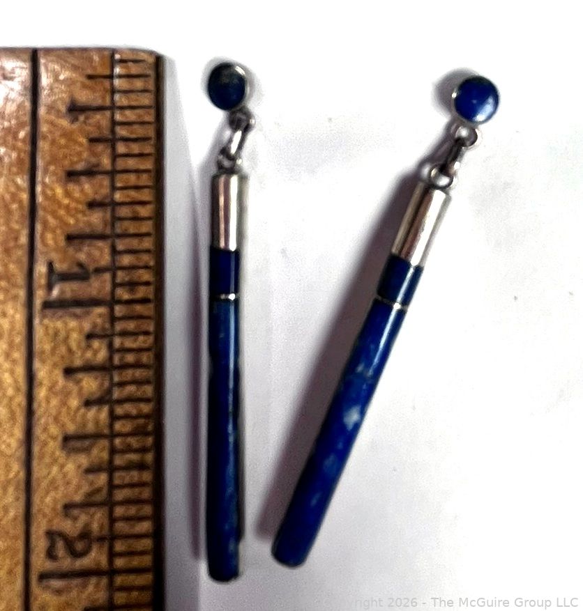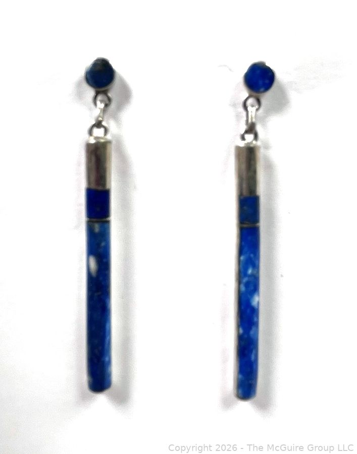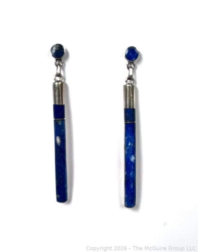 Lot #0316LC: Pair of Cylinder Lapis Lazuli and Sterling Silver Drop Earrings