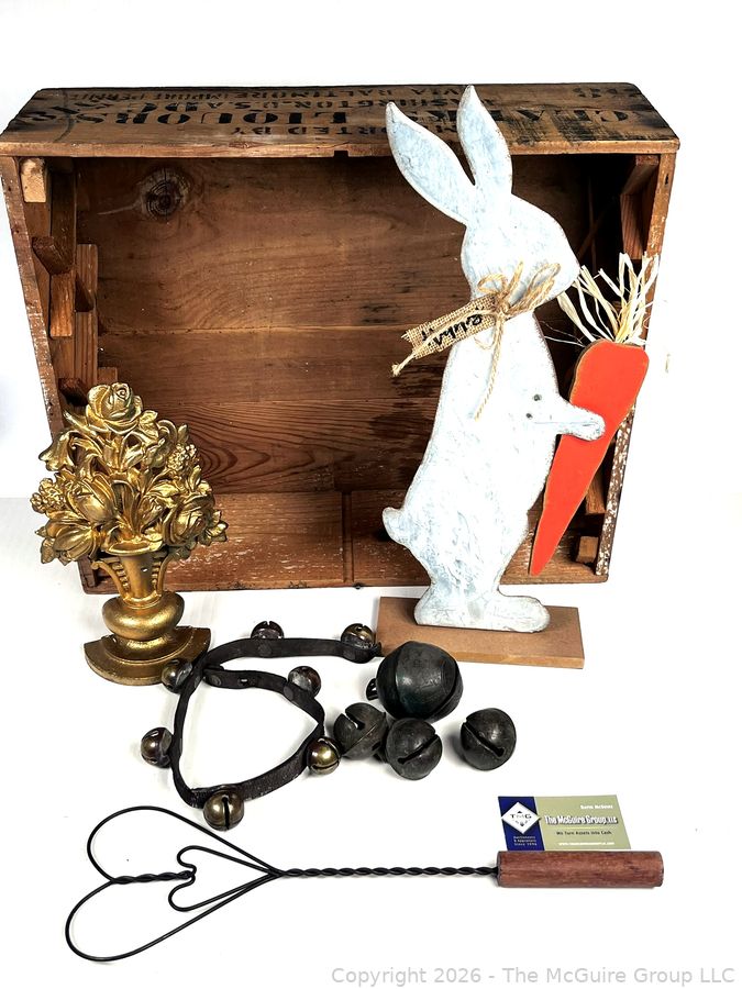 Lot #0212CP: Primitive Decorative Items Including Rug Beater and Wine Crate