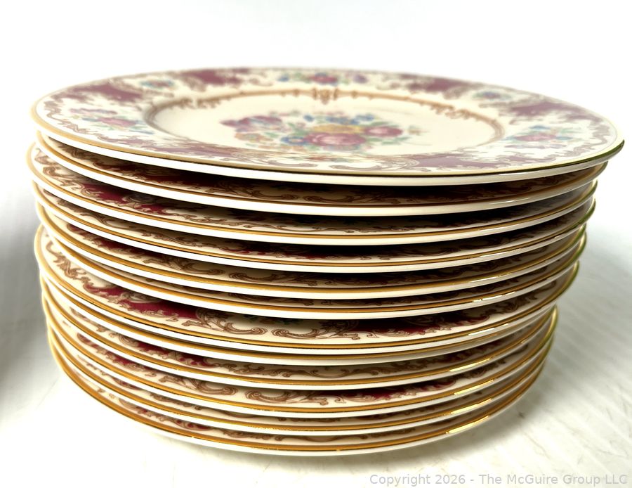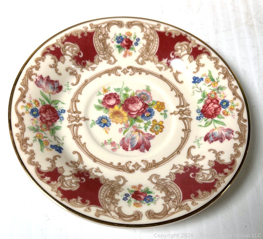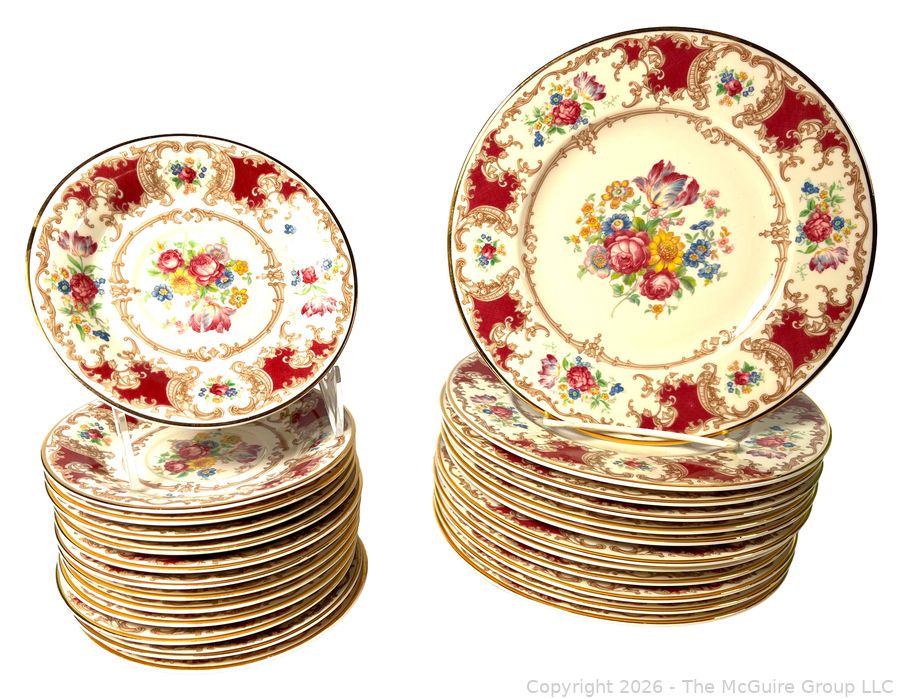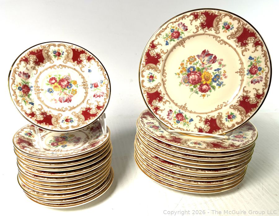 Lot #0367MB: Set of Syracuse China Old Ivory Romance Maroon Plates