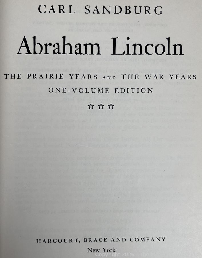 Lot #0166LC: Six (6) Books Including Abraham Lincoln by Carl Sandburg