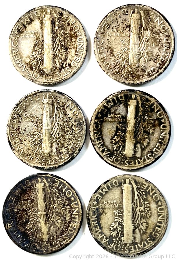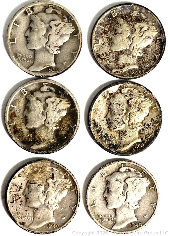 Lot #0180SM: Six (6) U.S. Mercury Dime Coins. 1927 1935 1937 1940 1940 1945