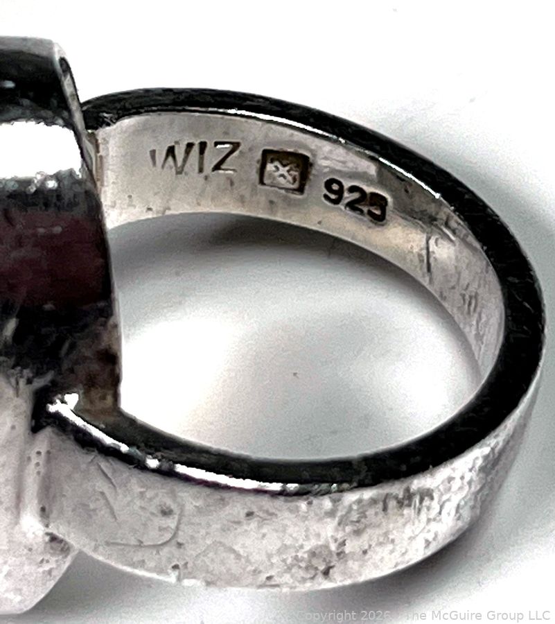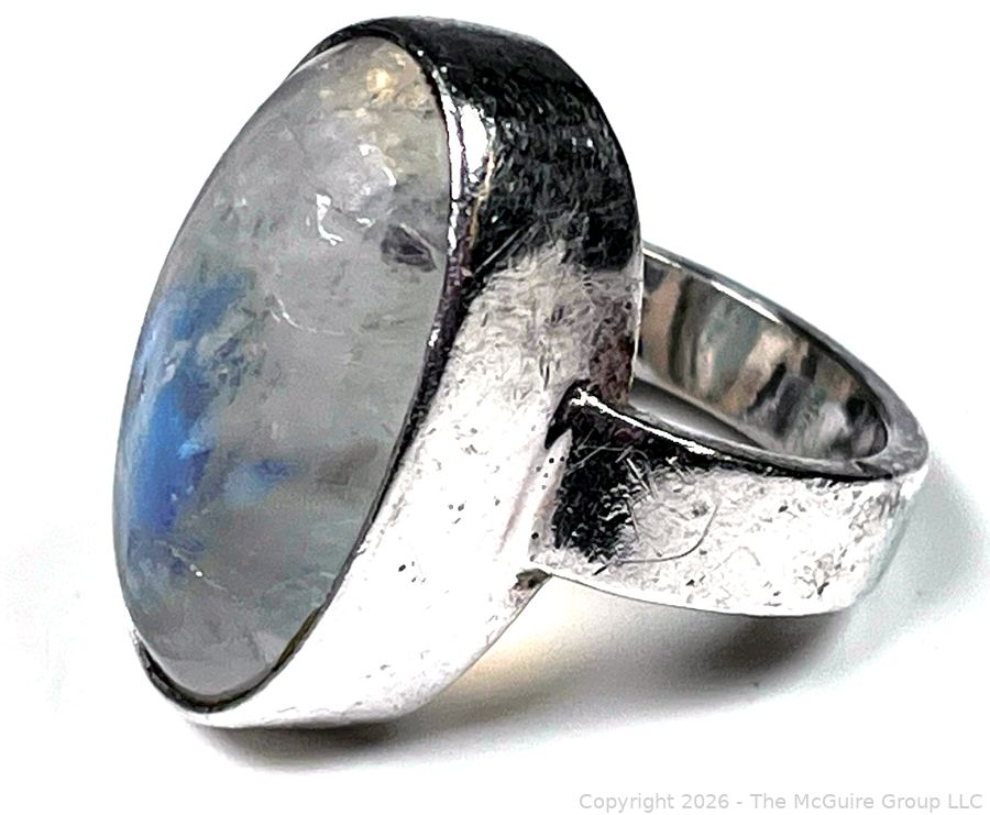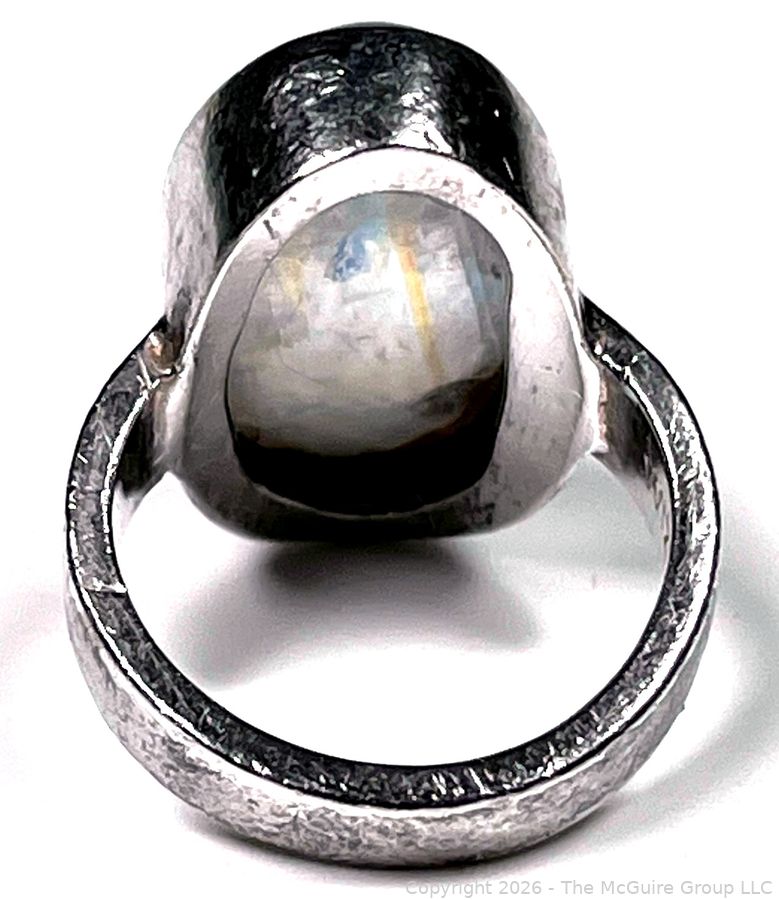 Lot #0109LC: Sterling Silver and Moonstone Cabochon Ring Signed by Artist Wiz.