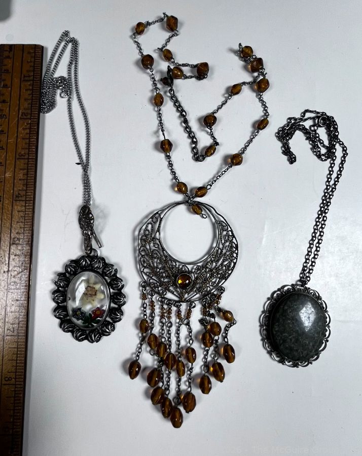 Lot #0328LC: Three (3) Filigree Beaded Necklaces