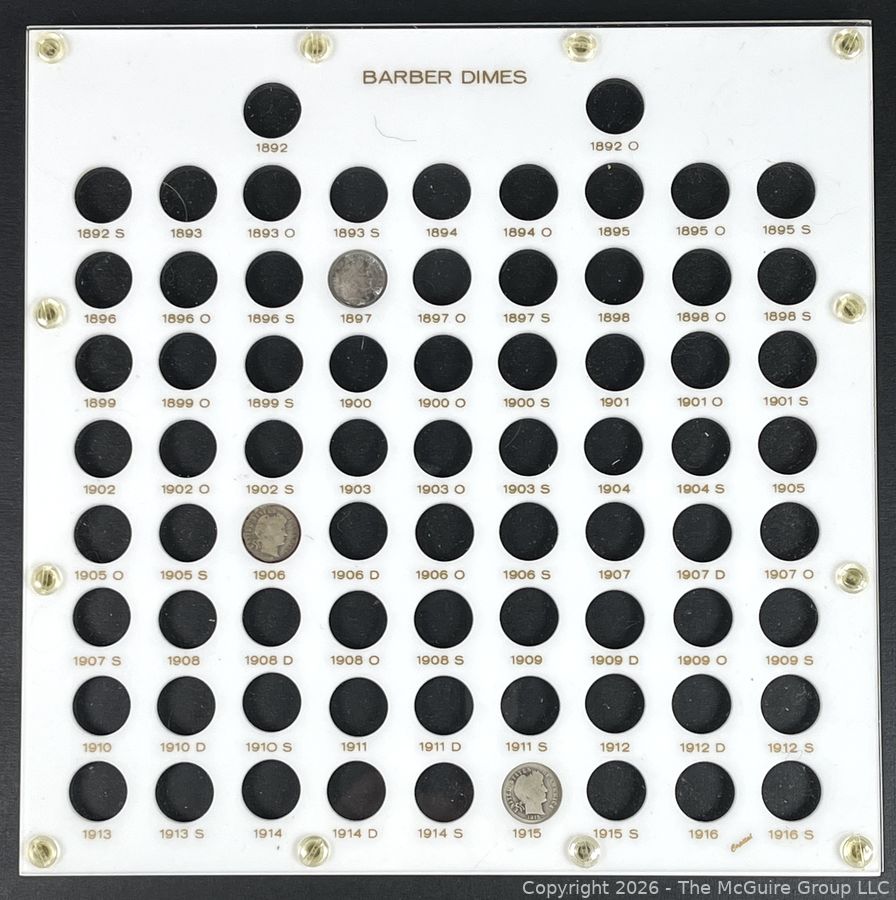 Lot #0056LC: Three (3) United States Barber Quarter Coins. 1897, 1906, 1915 in Capital Plastics White Acrylic Holder