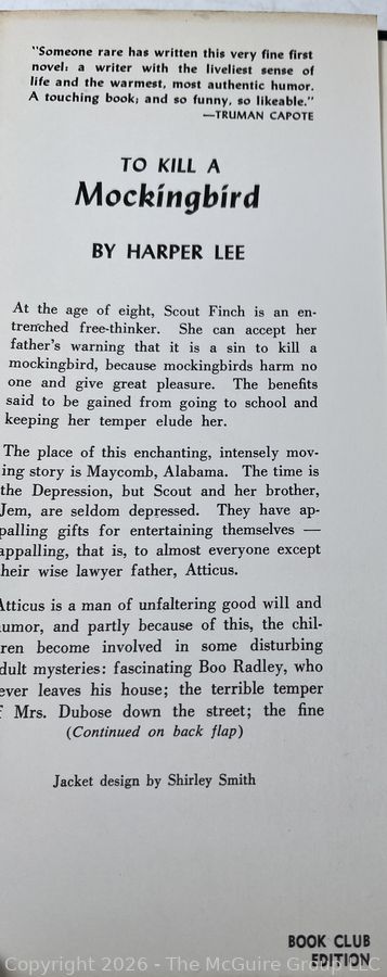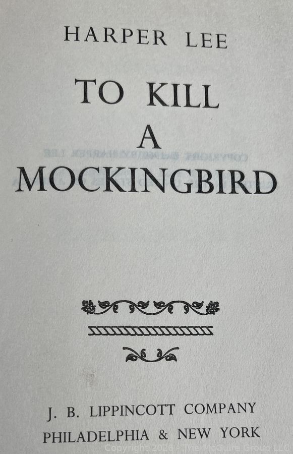 Lot #0079LC: To Kill A Mockingbird Book Club Edition by Harper Lee, Harper Published by J. B. Lippincott Company, Philadelphia, 1960