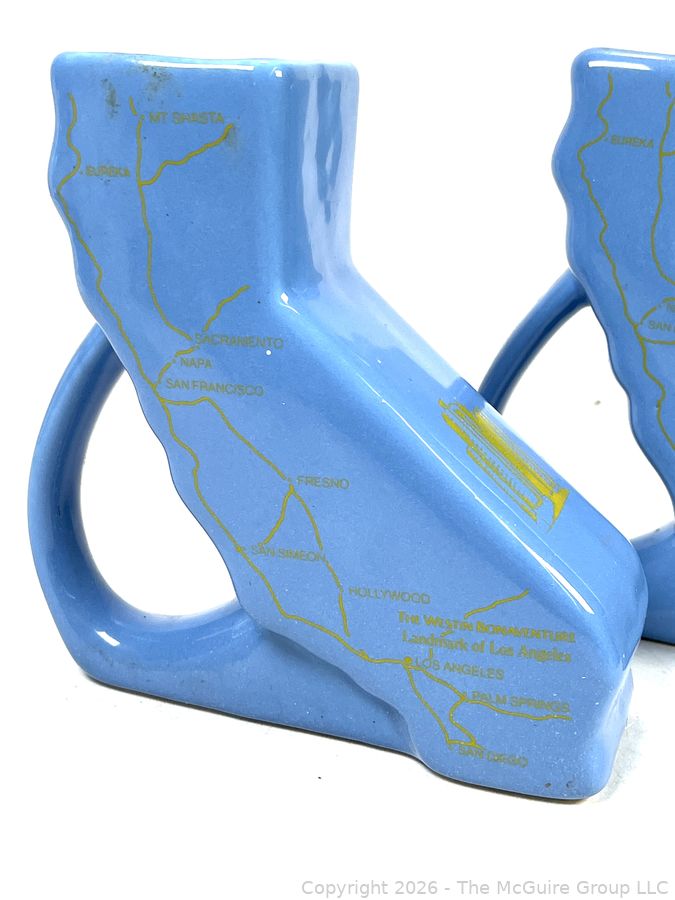 Lot #0105LC: Two (2) The Westin Bonaventure Los Angeles Souvenir Pottery Mugs in the Form of California