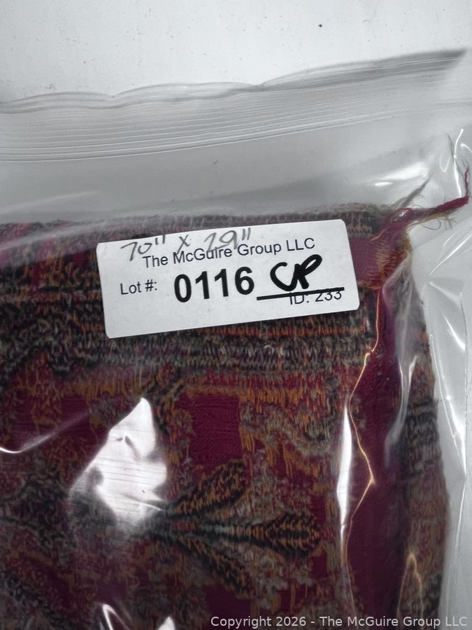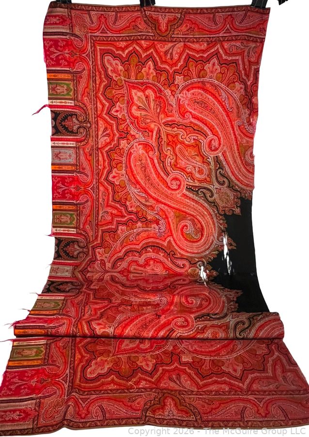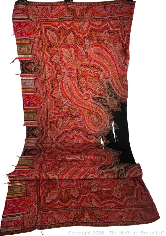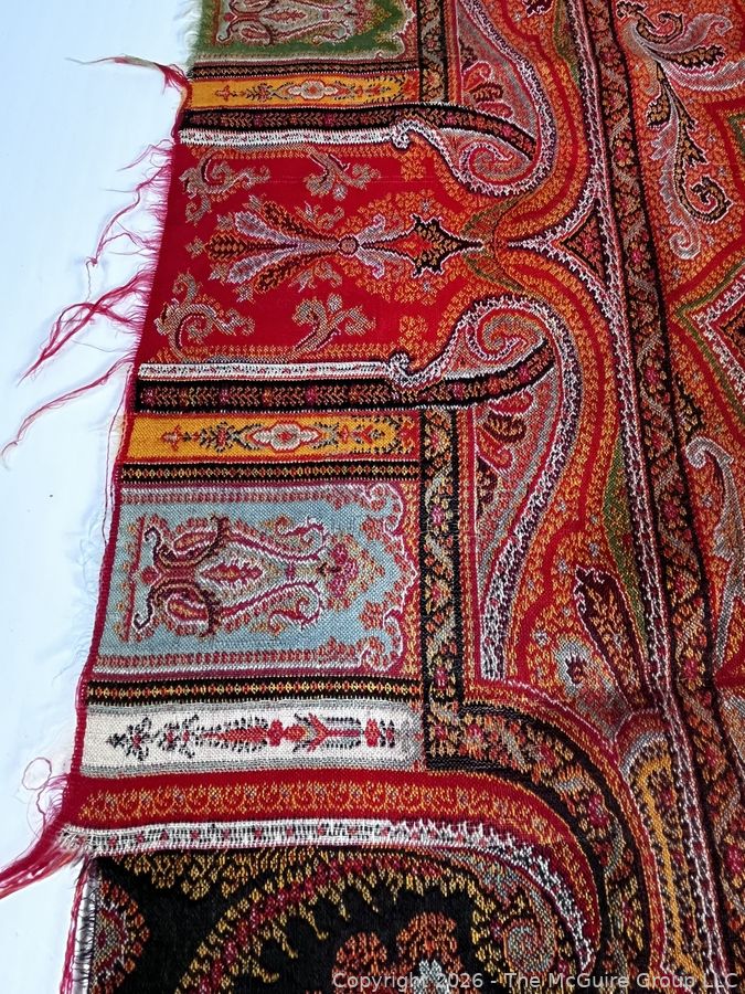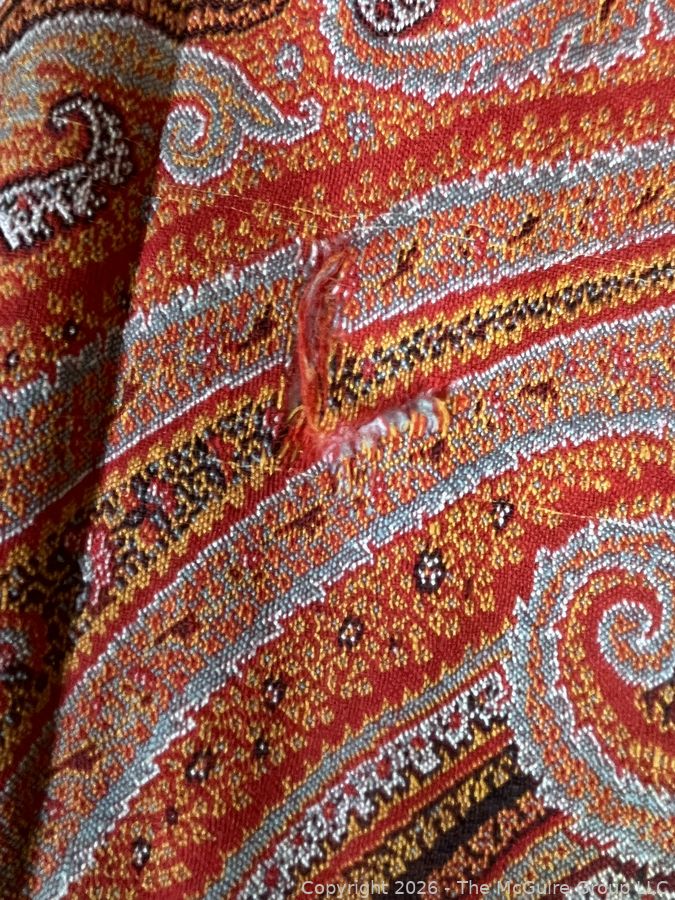 Lot #0116CP: Victorian Paisley Woven Jacquard Shawl or Throw. 29" x 70". Some Damage.