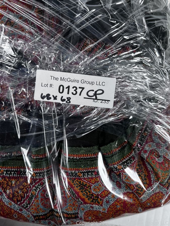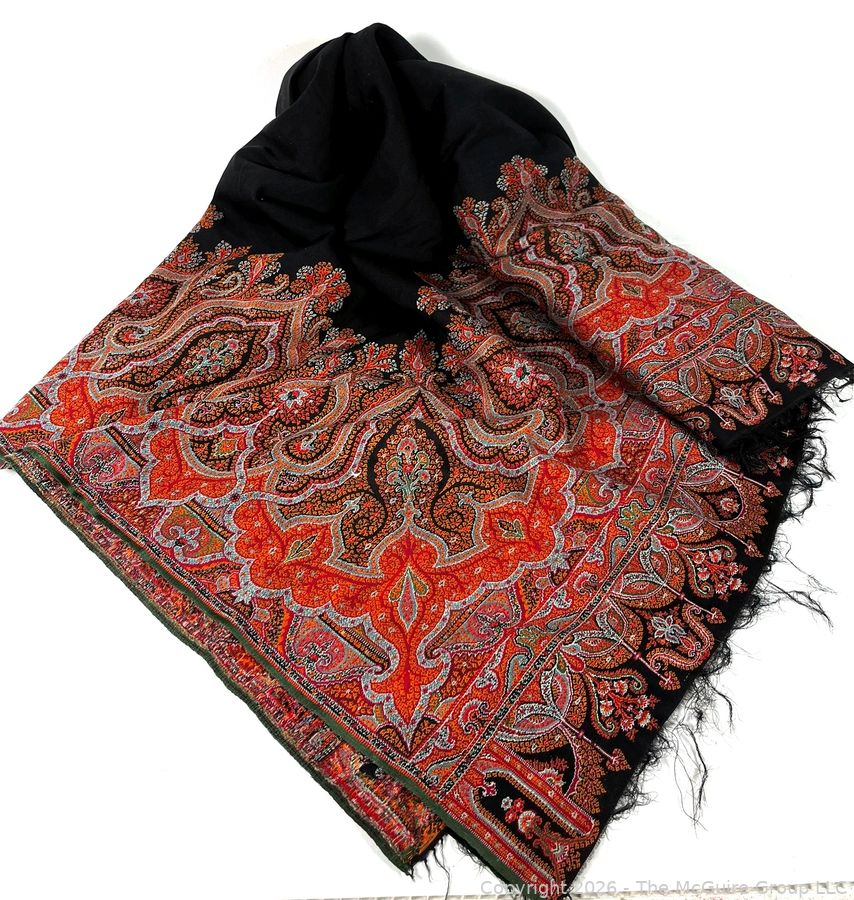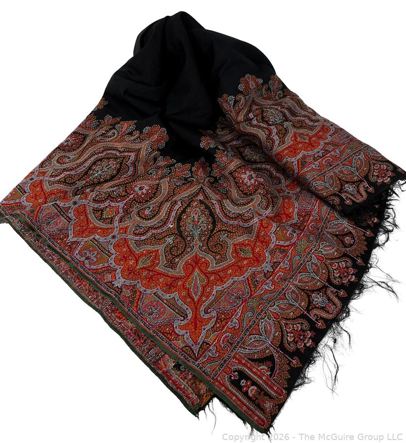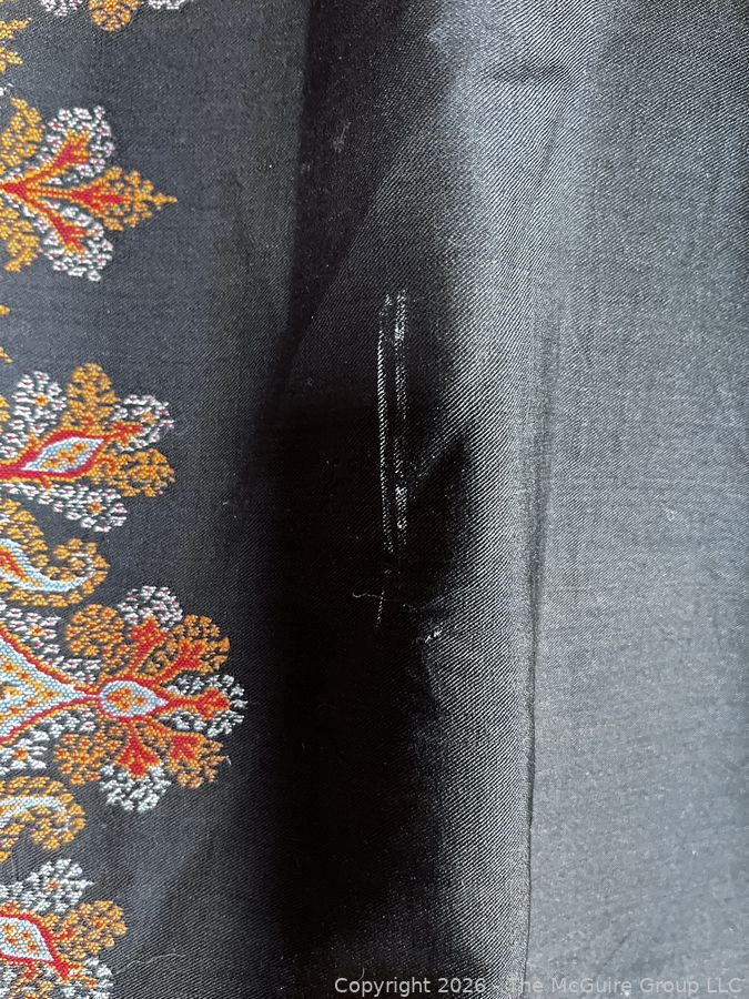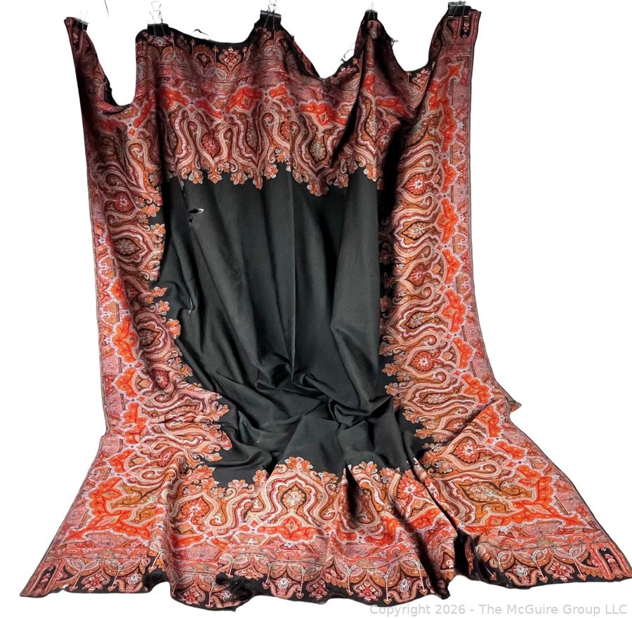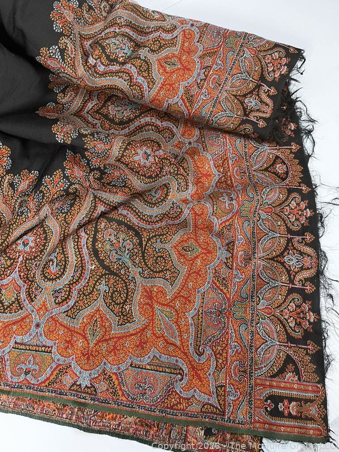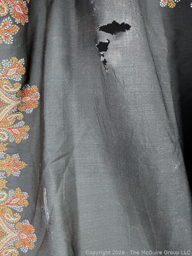 Lot #0137CP: Victorian Paisley Woven Jacquard Shawl or Throw. 60" x 84". Some Damage.